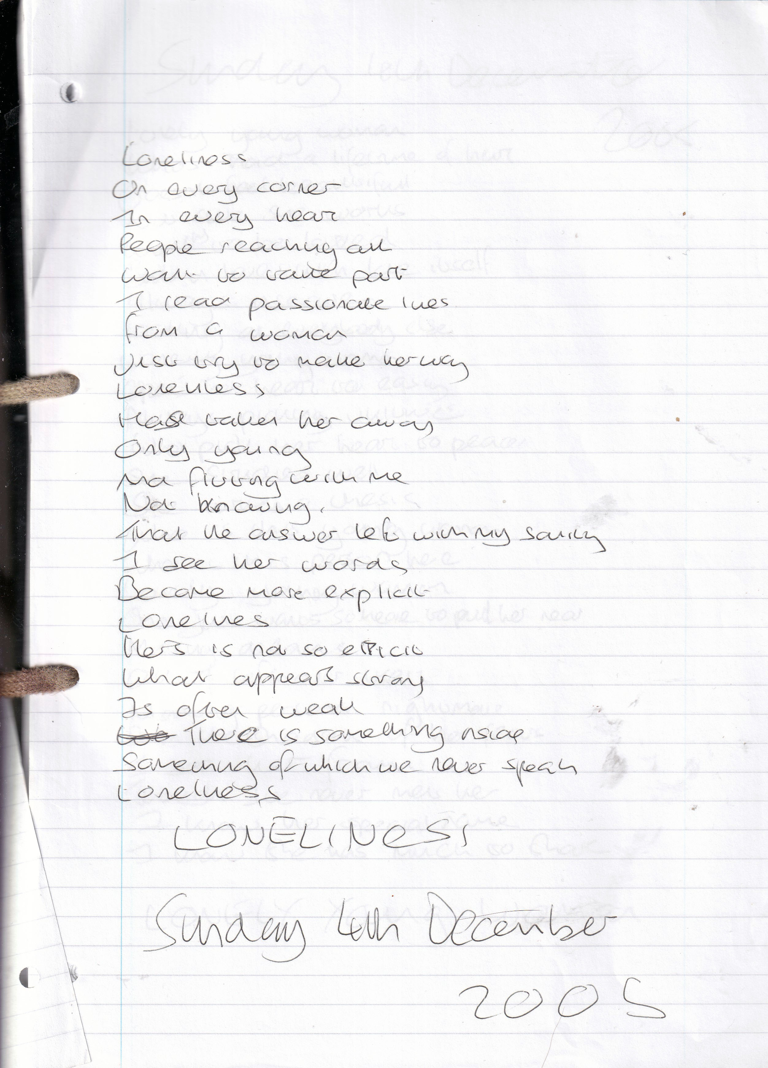 Loneliness – Written Sunday 4th December 2005 (Aged 30)