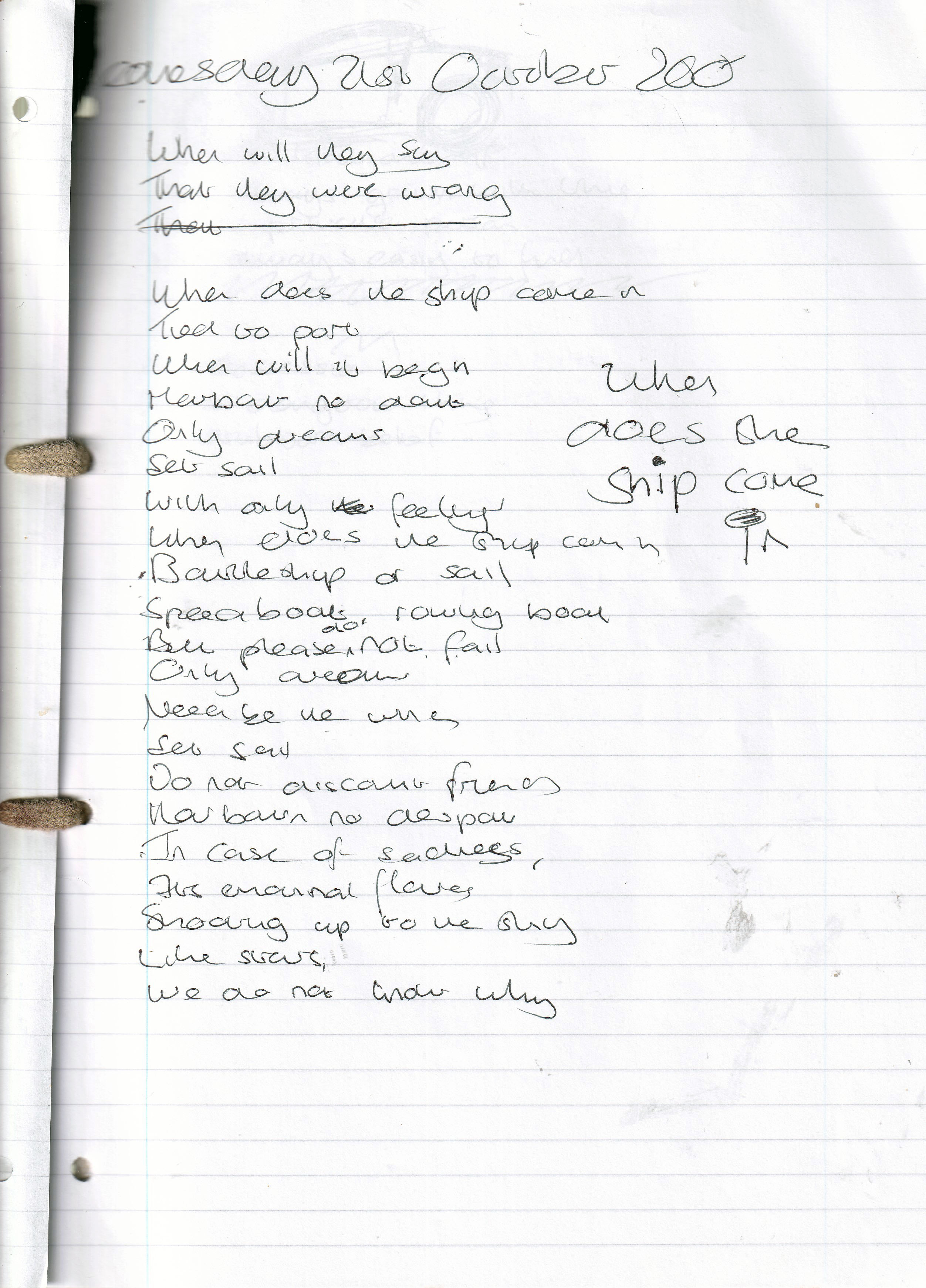 When Does The Ship Come In – Written Wednesday 21st December 2005 (Aged 30)