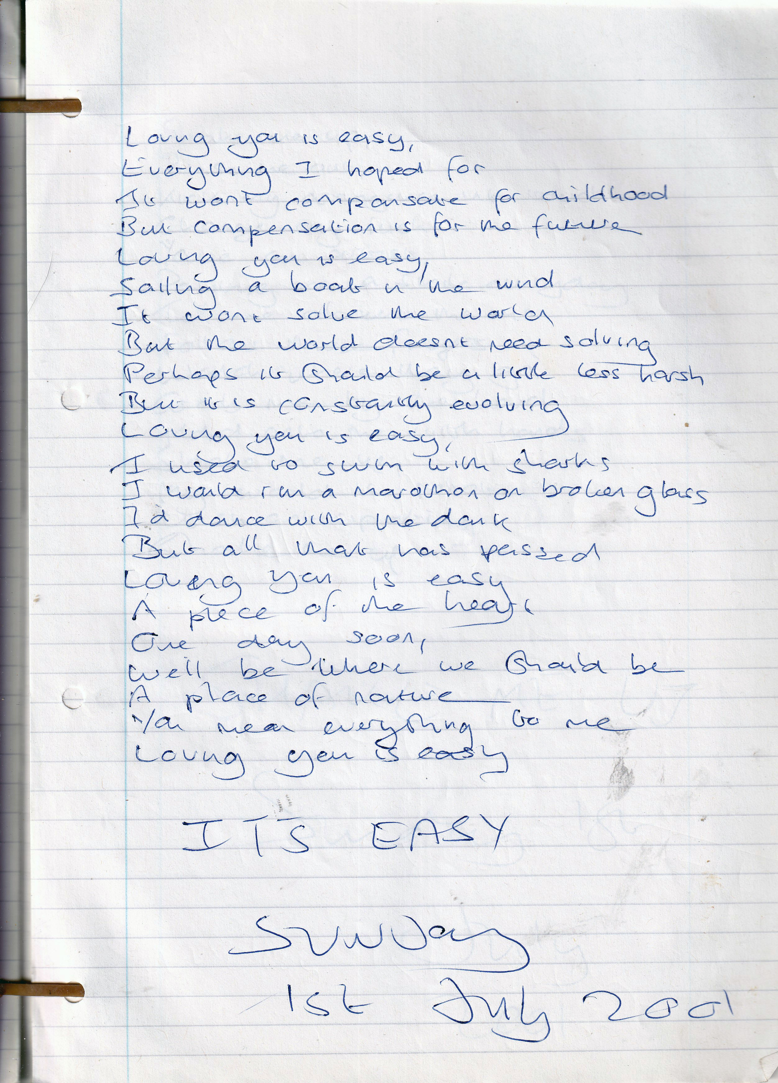 It’s Easy – Written Sunday 1st July 2001 (Aged 26)