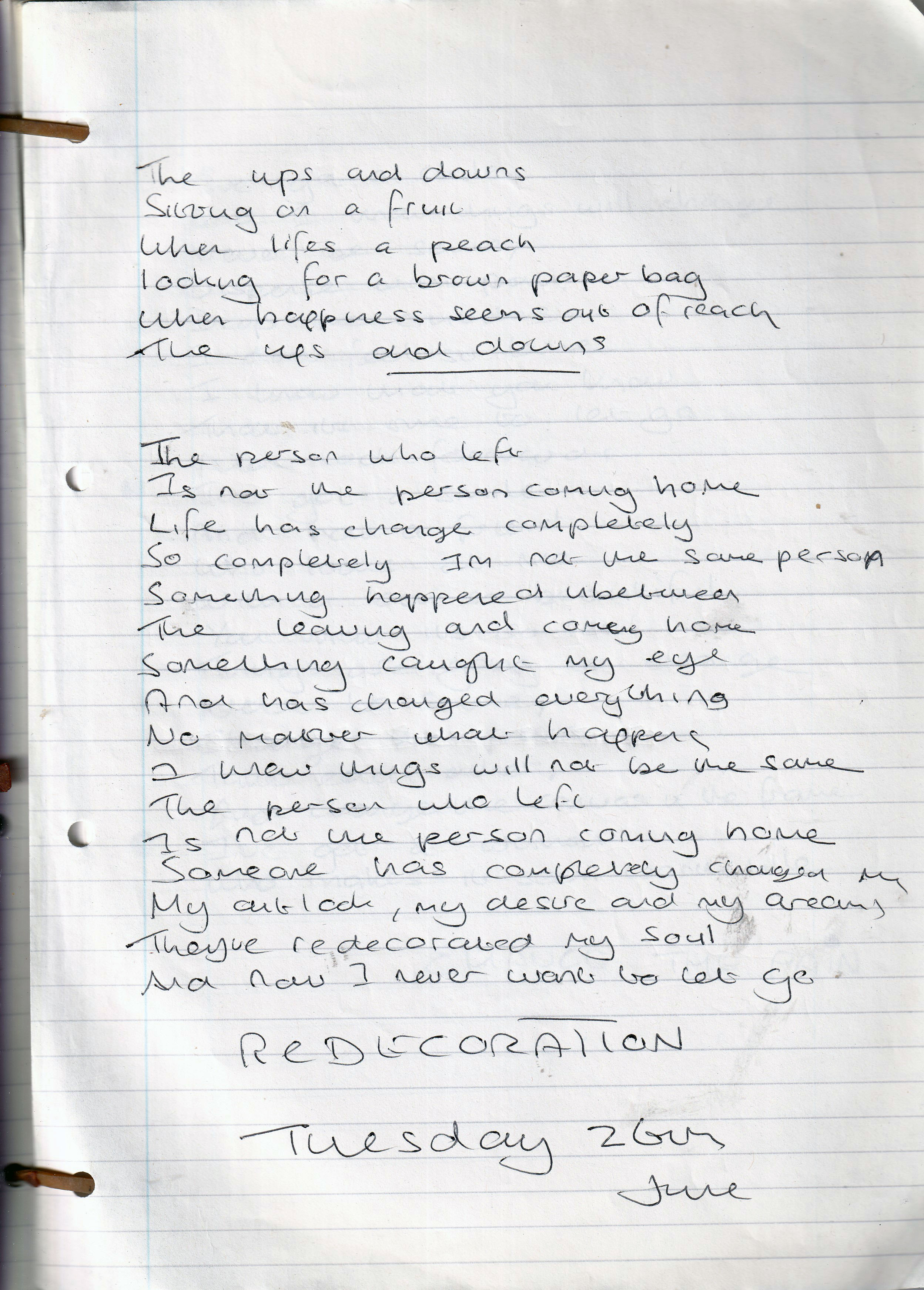 Redecoration – Written Tuesday 26th June 2001 (Aged 26)