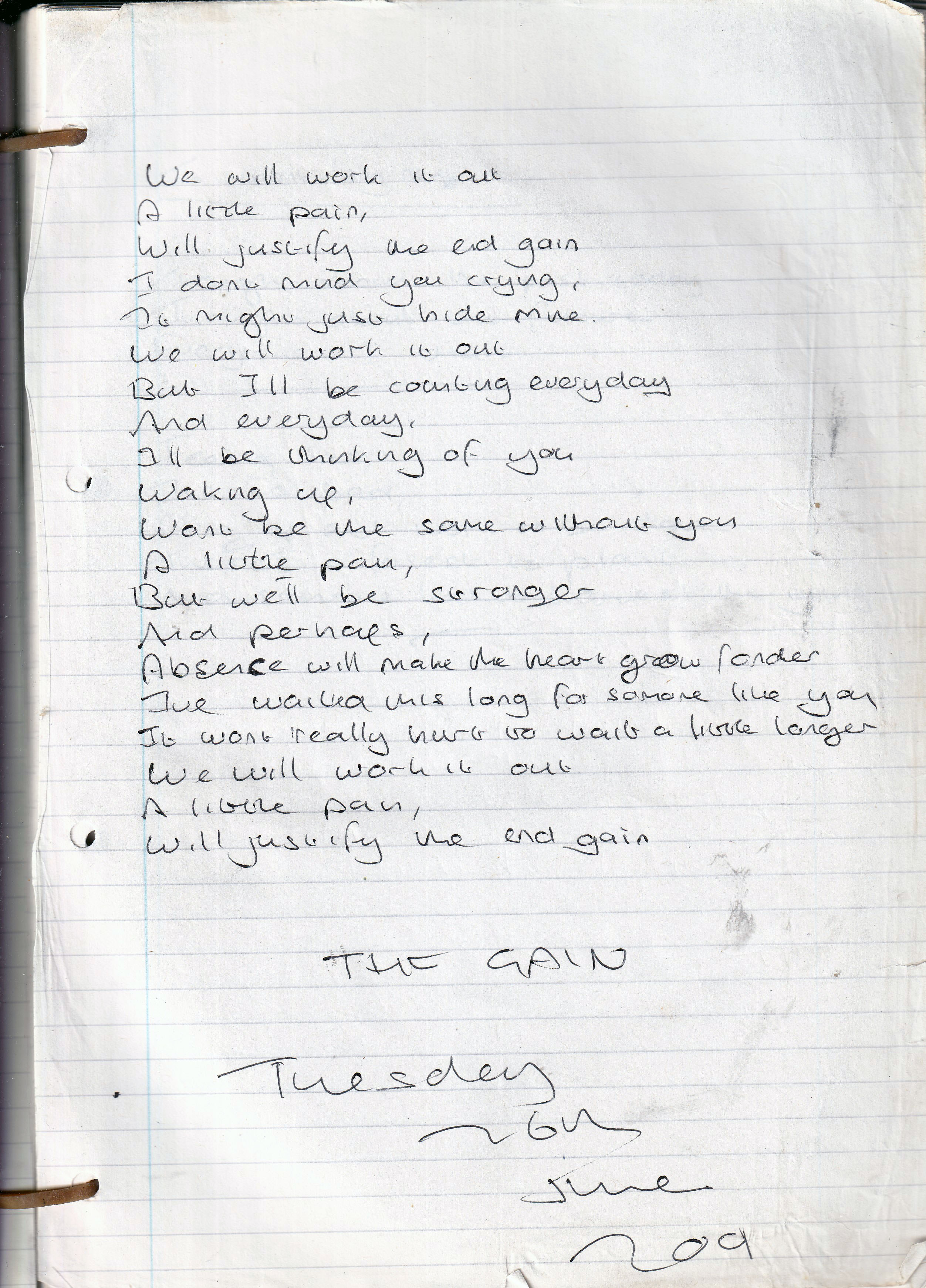 The Gain – Written Tuesday 26th June 2001 (Aged 26)