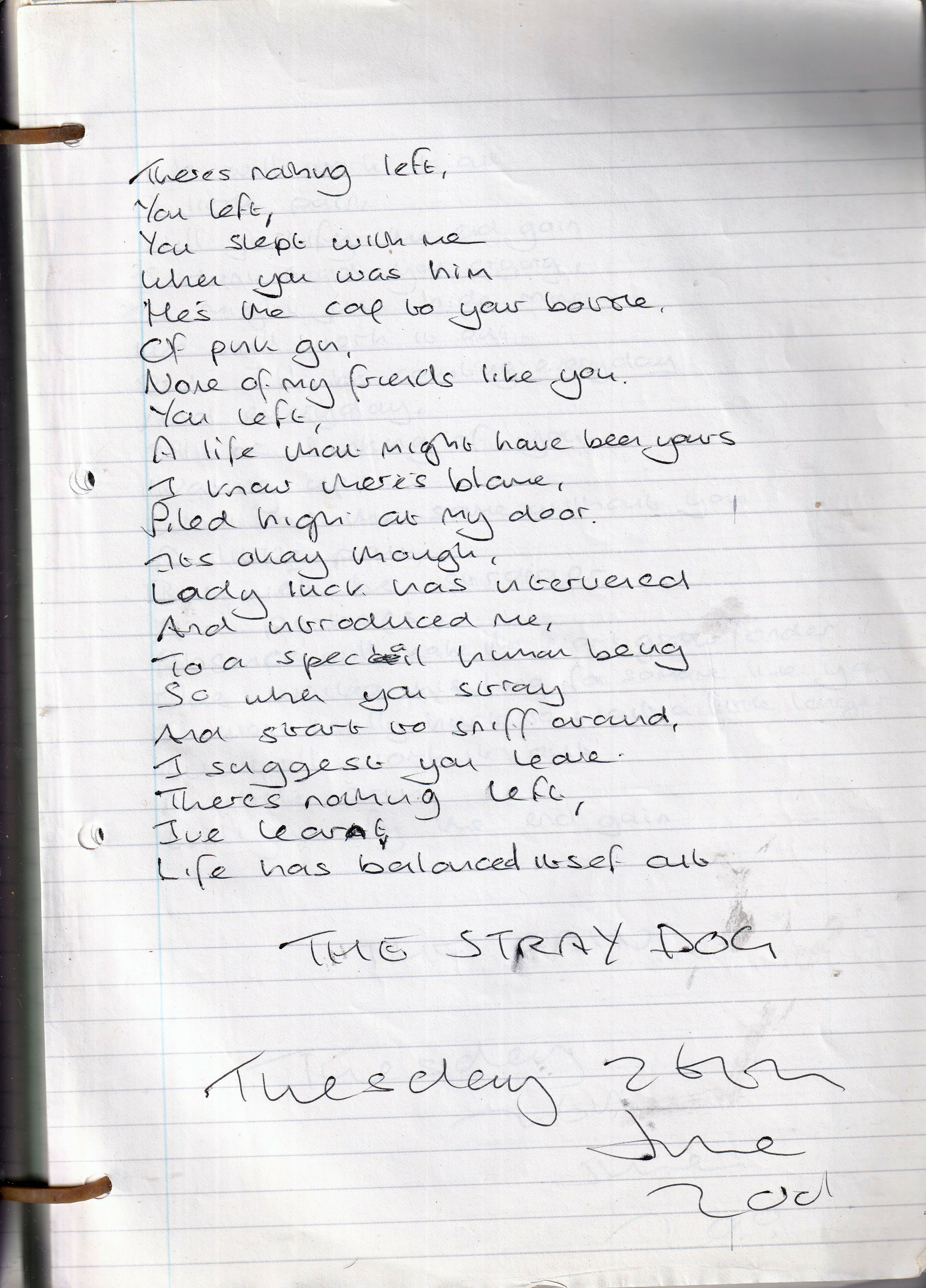 The Stray Dog – Written Tuesday 26th June 2001 (Aged 26)