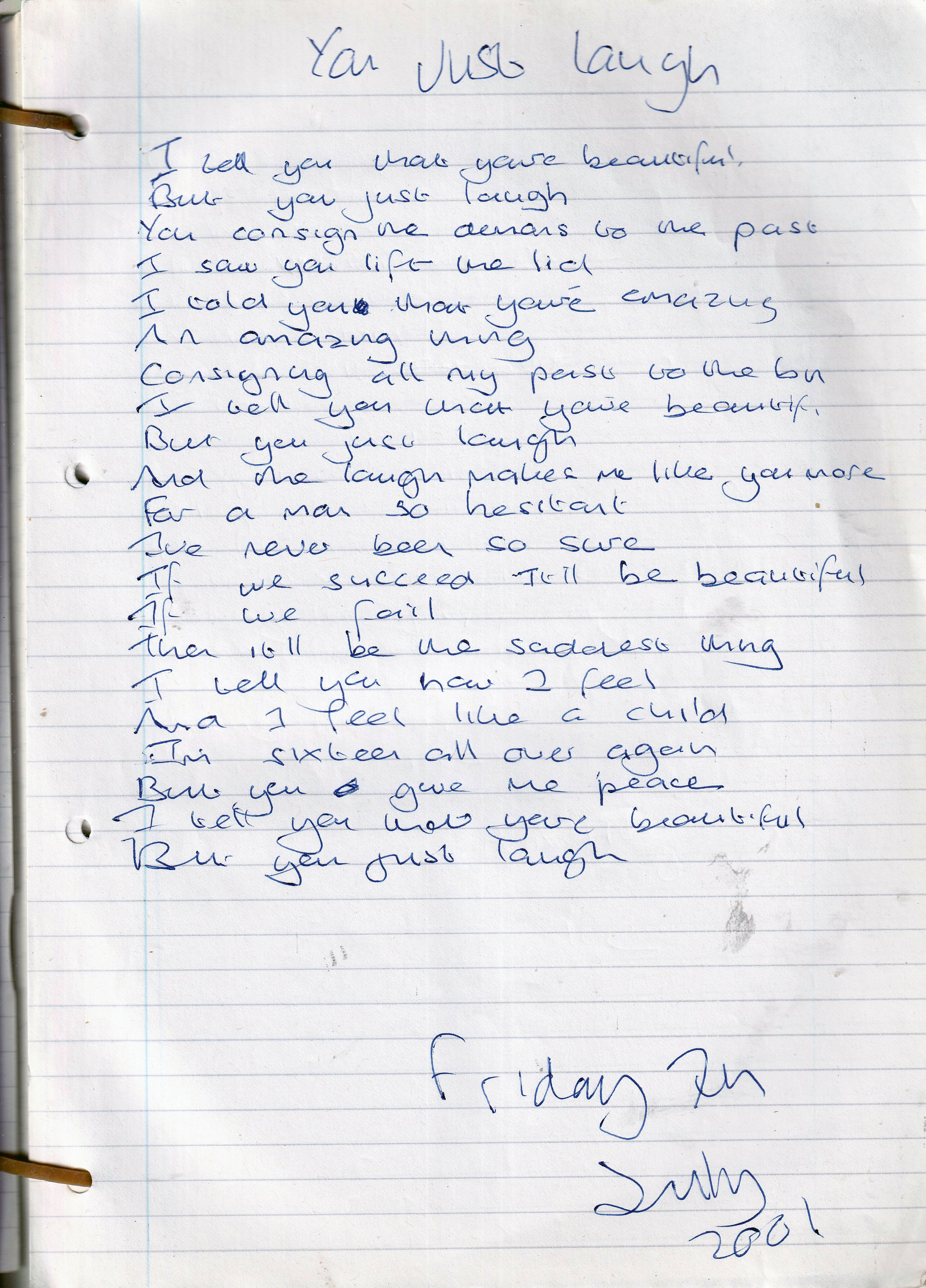 You Just Laugh – Written Friday 6th July 2001 (Aged 26)