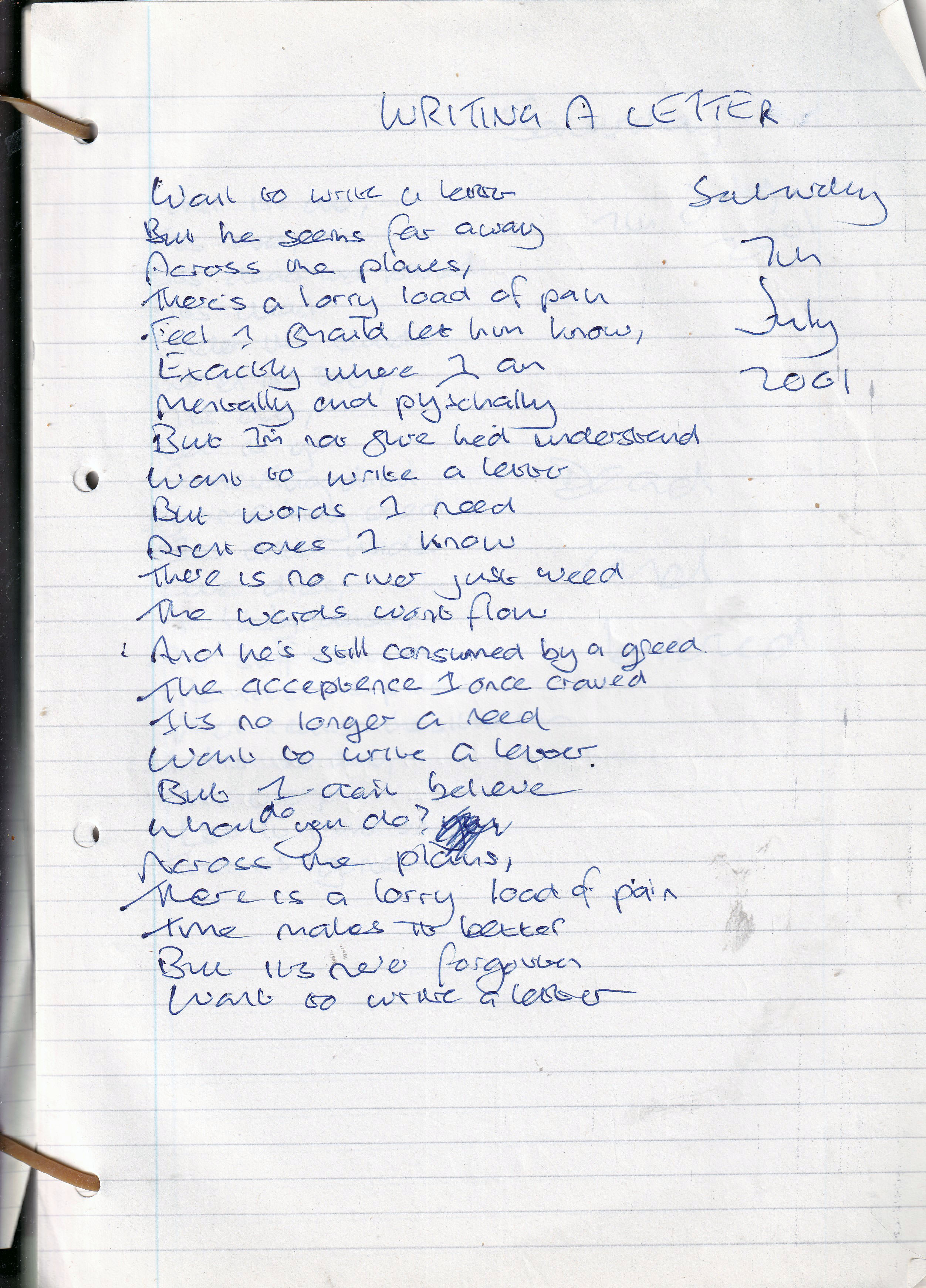 Writing A Letter – Written Saturday 7th July 2001 (Aged 26)
