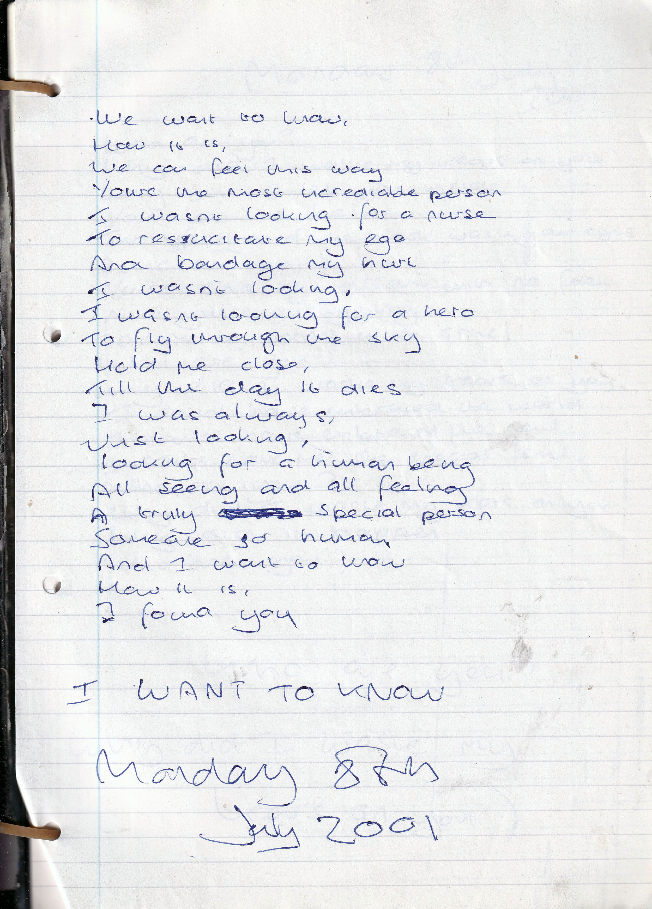 I Want To Know – Written Monday 9th July 2001 (Aged 26)
