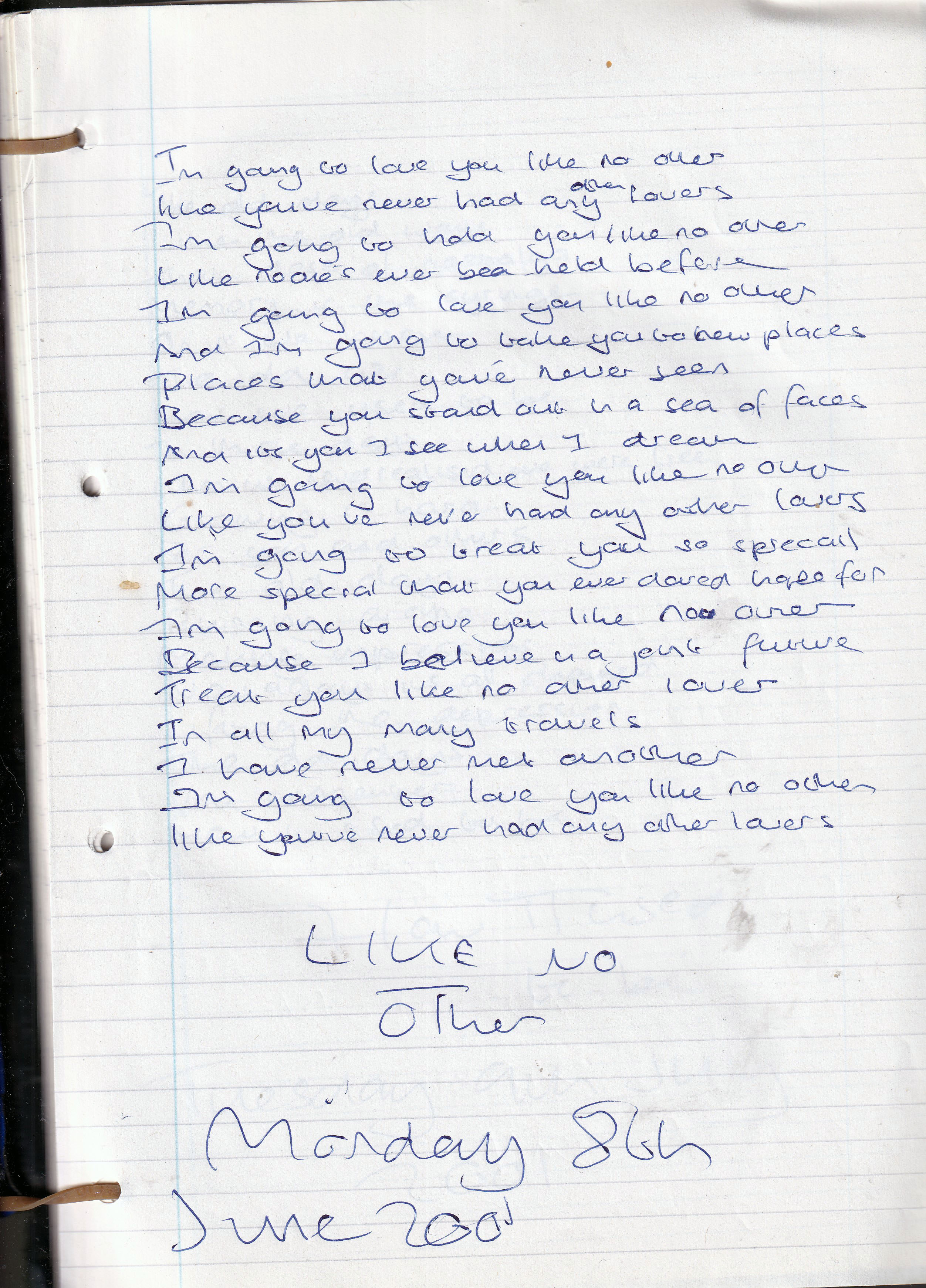 Like No Other – Written Monday 9th June 2001 (Aged 26)