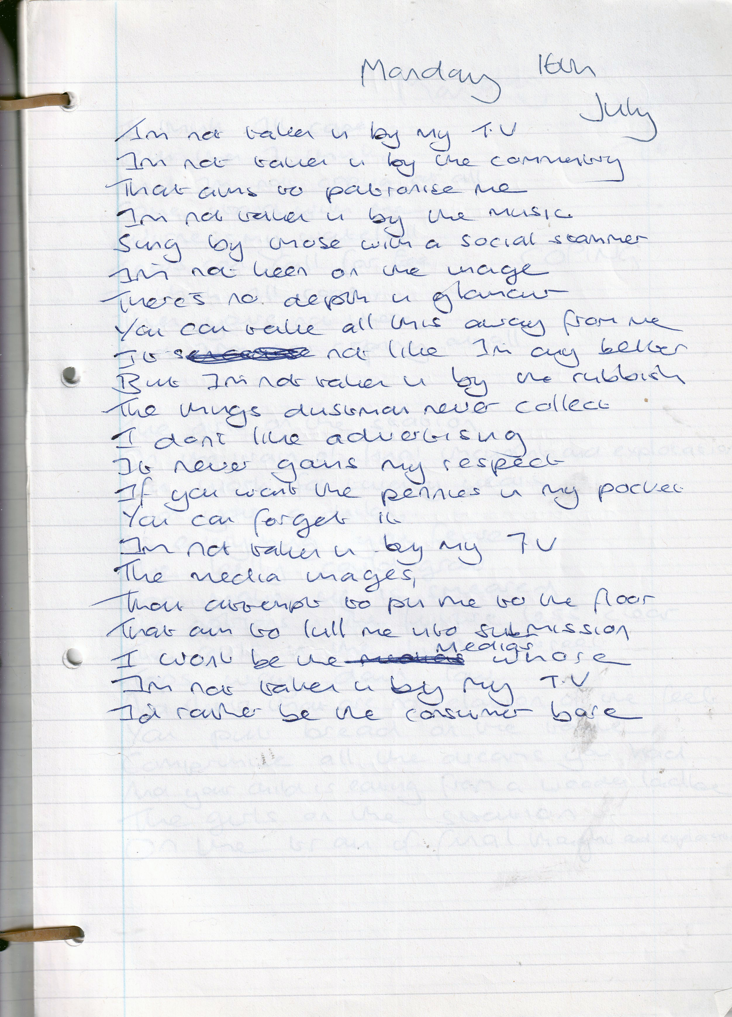 Consumption – Written Monday 16th July 2001 (Aged 26)