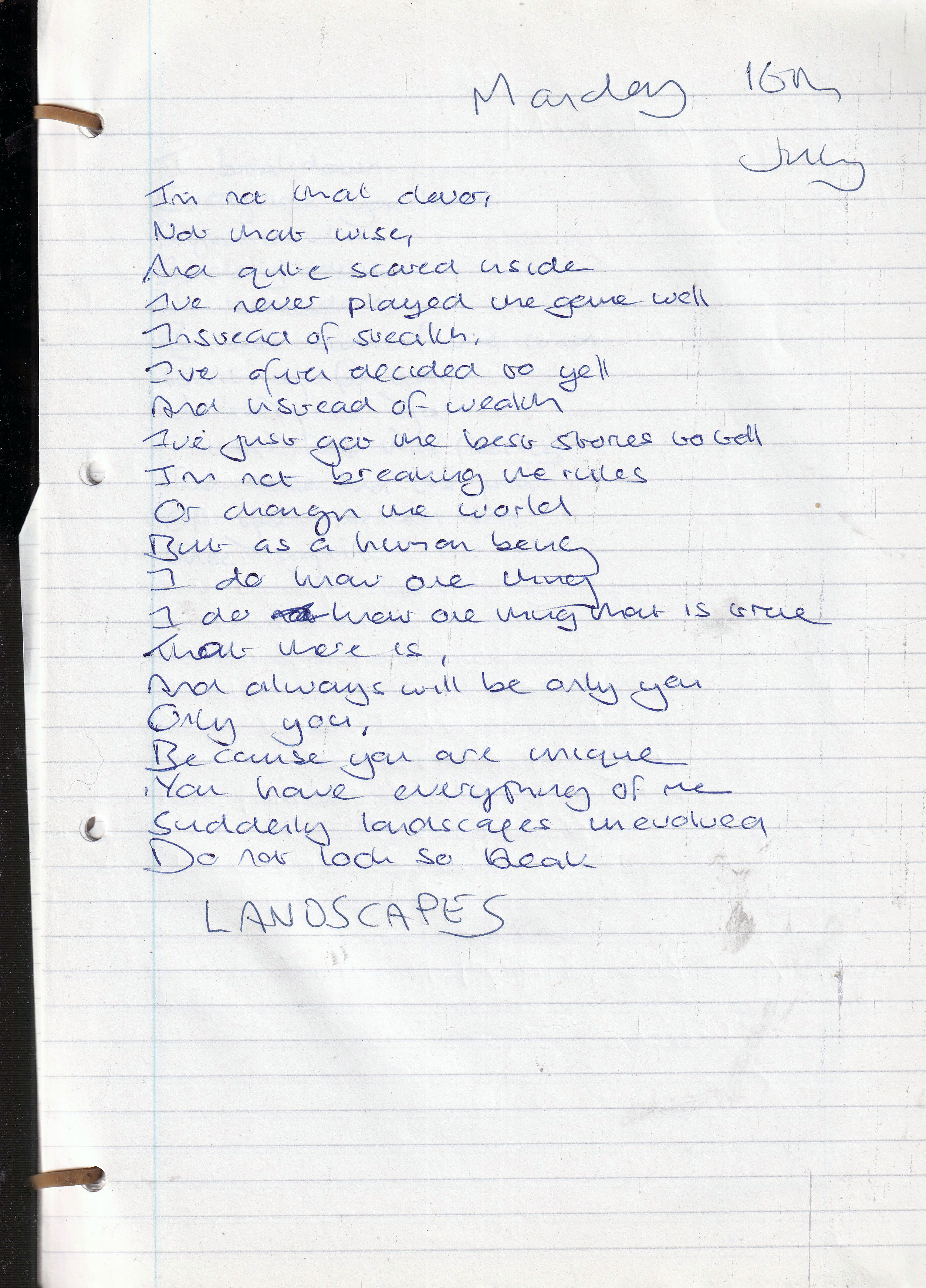 Landscapes – Written Monday 16th July 2001 (Aged 26)
