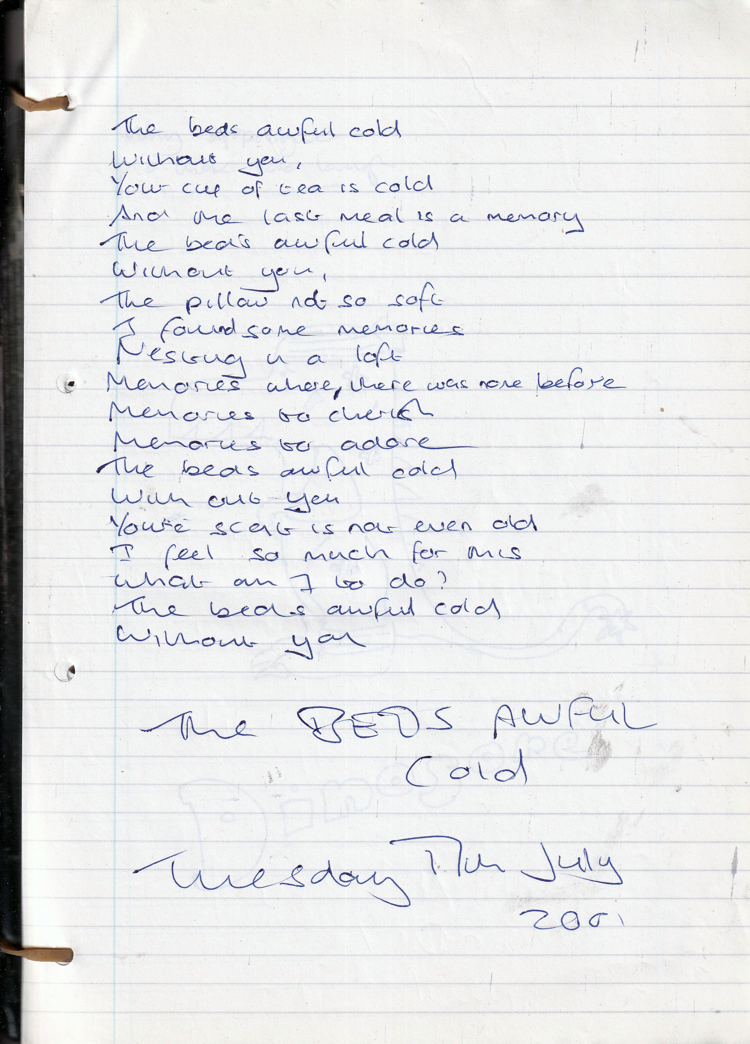 The Bed Is Awful Cold – Written Tuesday 17th July 2001 (Aged 26)