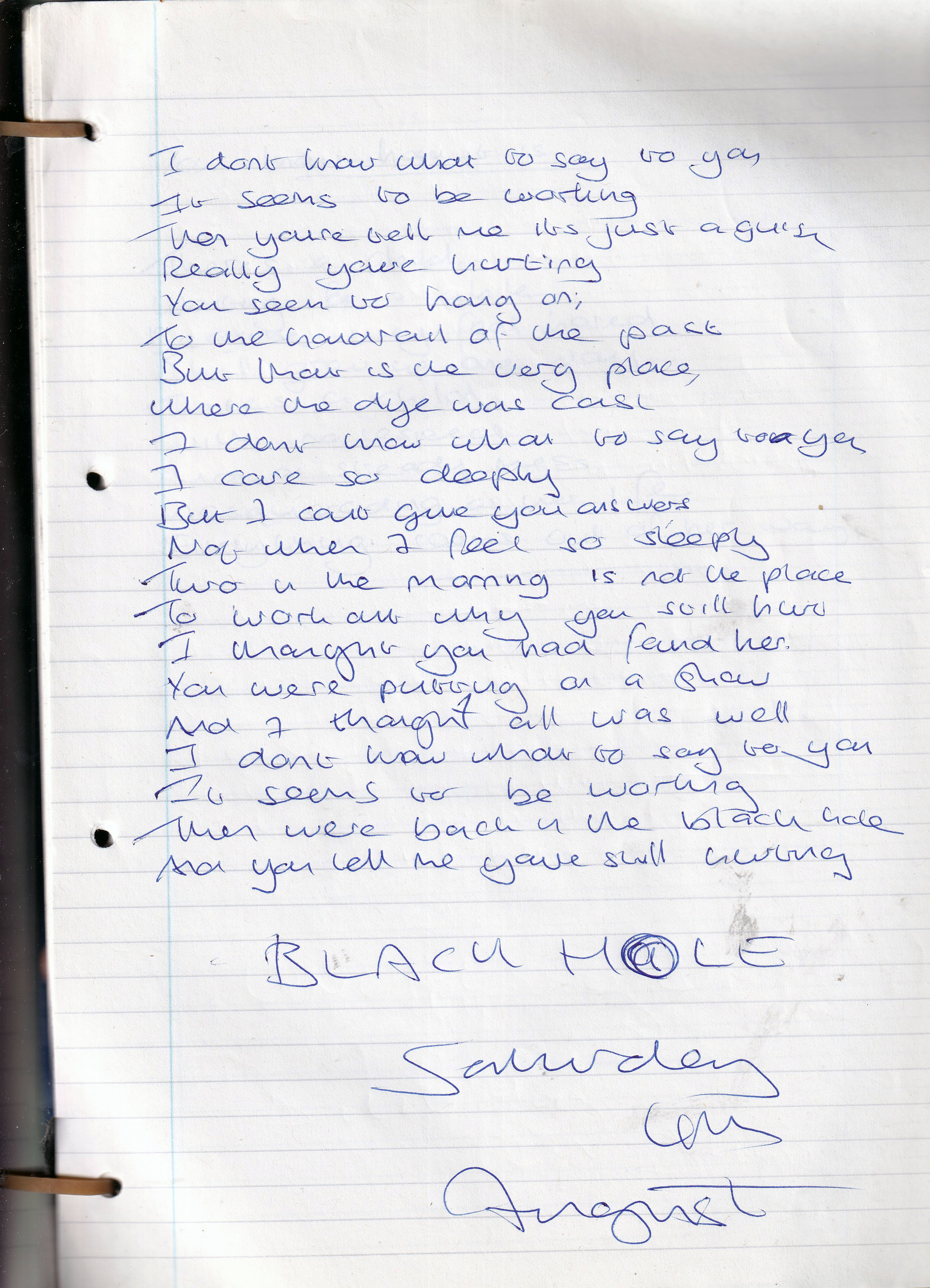 Blackhole – Written Saturday 4th August 2001 (Aged 26)