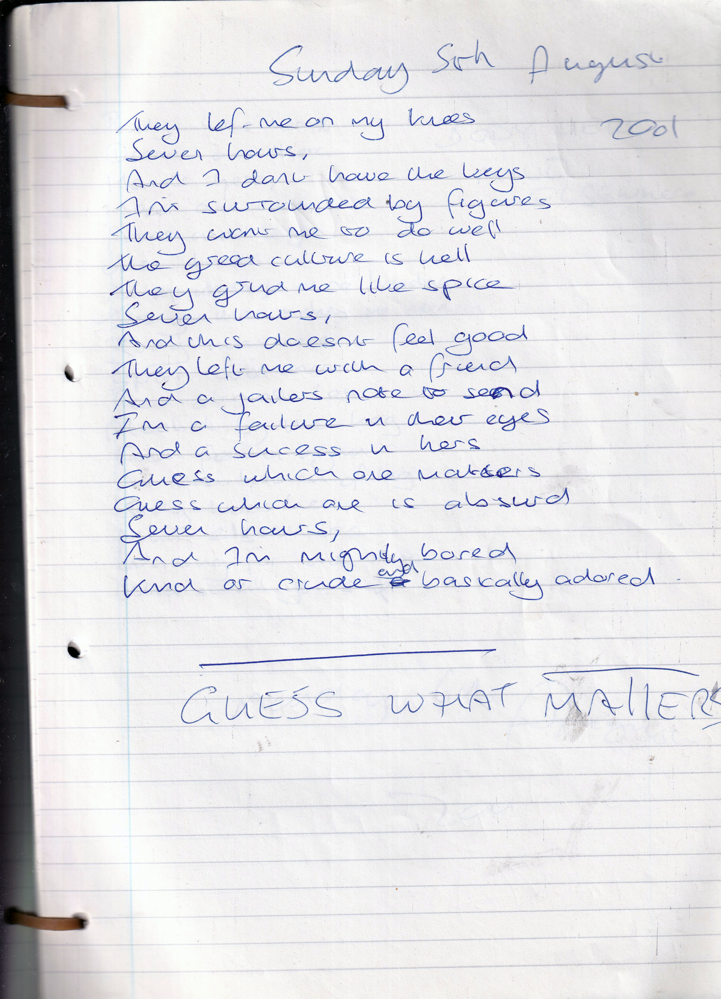 Guess What Matters? – Written Sunday 5th August 2001 (Aged 26)