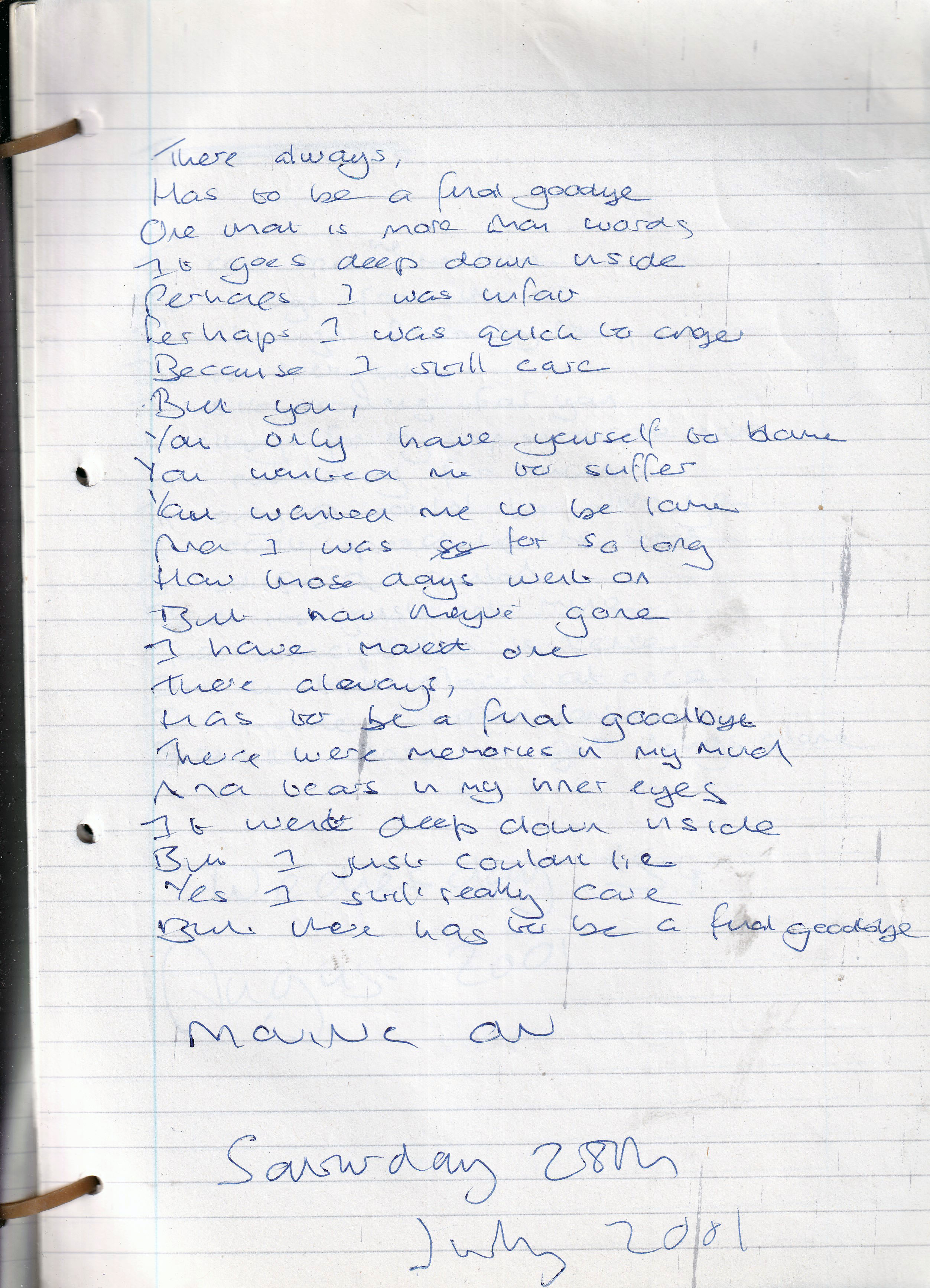 Moving On – Written Saturday 28th July 2001 (Aged 26)