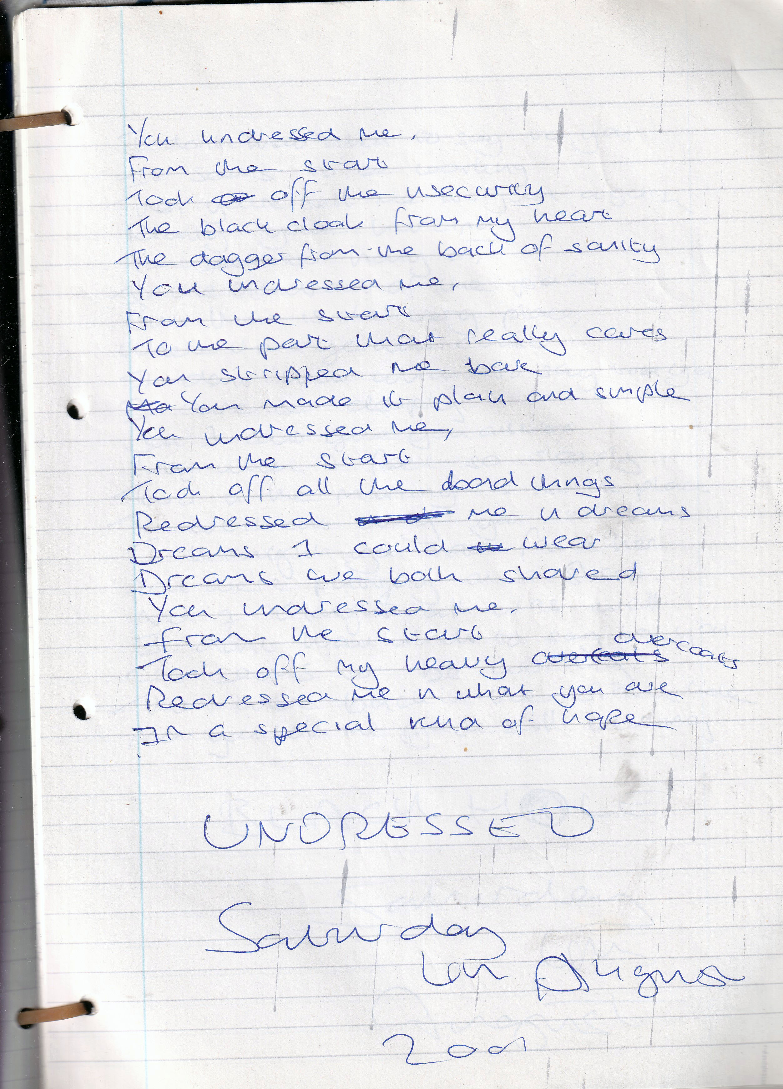 Undressed – Written Saturday 4th August 2001 (Aged 26)