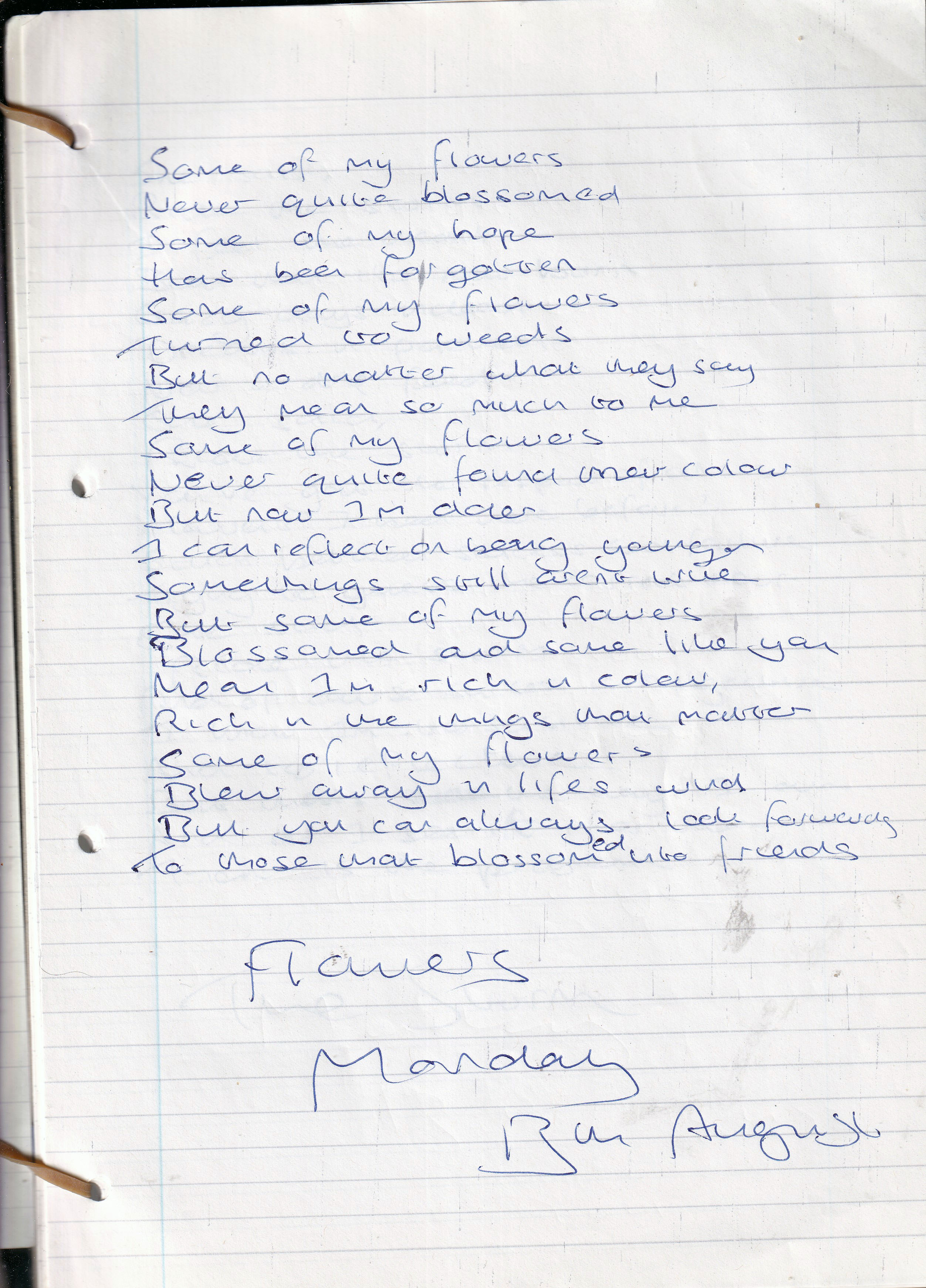 Flowers – Written Monday 13th August 2001 (Aged 26)