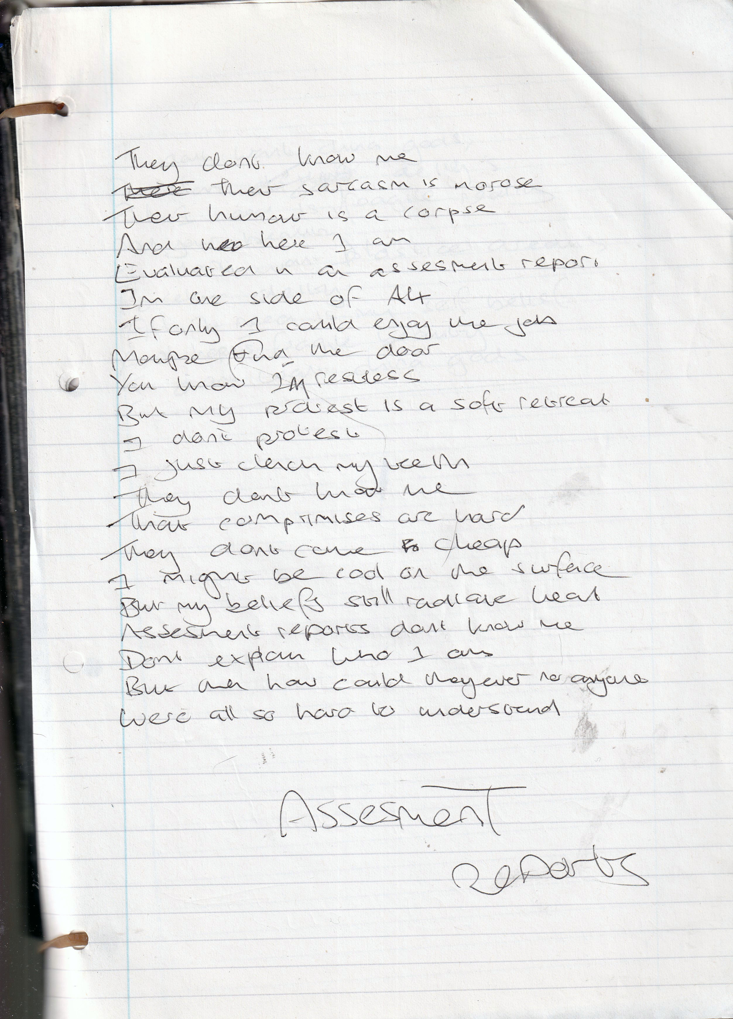 Assessment Reports – Written August 2001 (Aged 26)