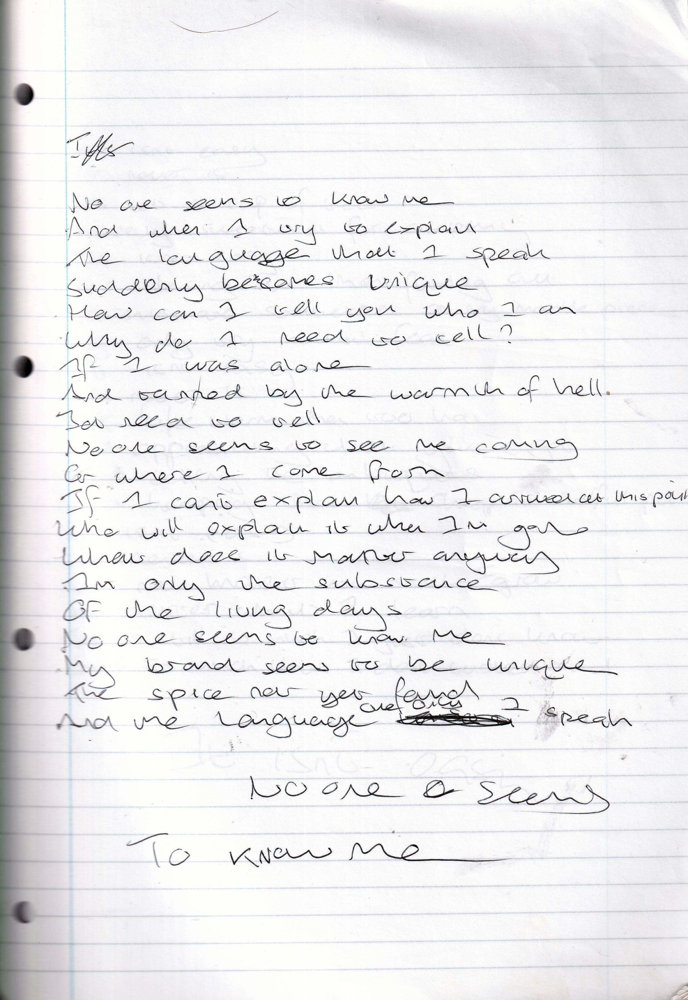 No One Seems To Know Me – Written February 2003 (Aged 28)