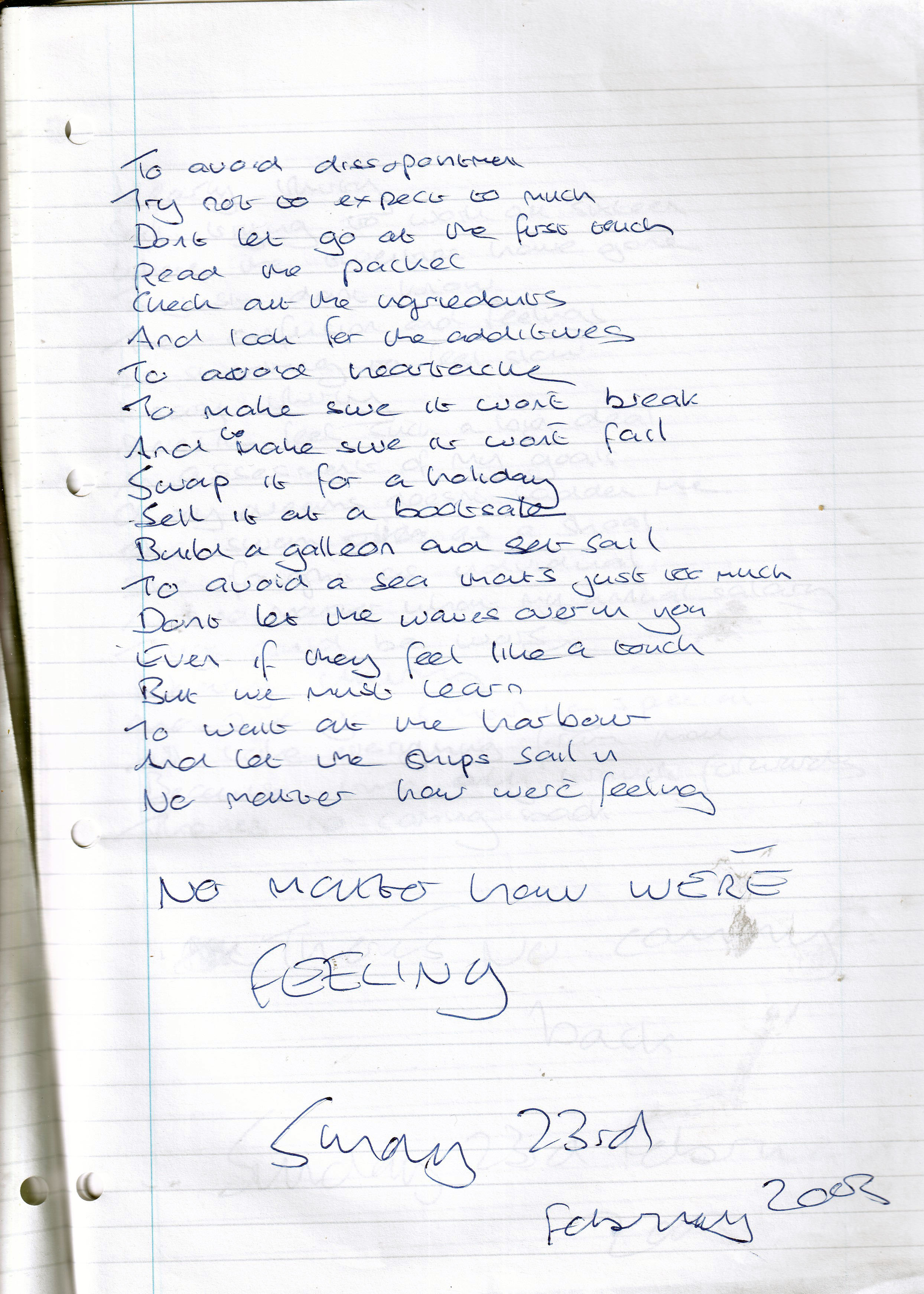 No Matter How We Are Feeling – Written Sunday 23rd February 2003 (Aged 28)