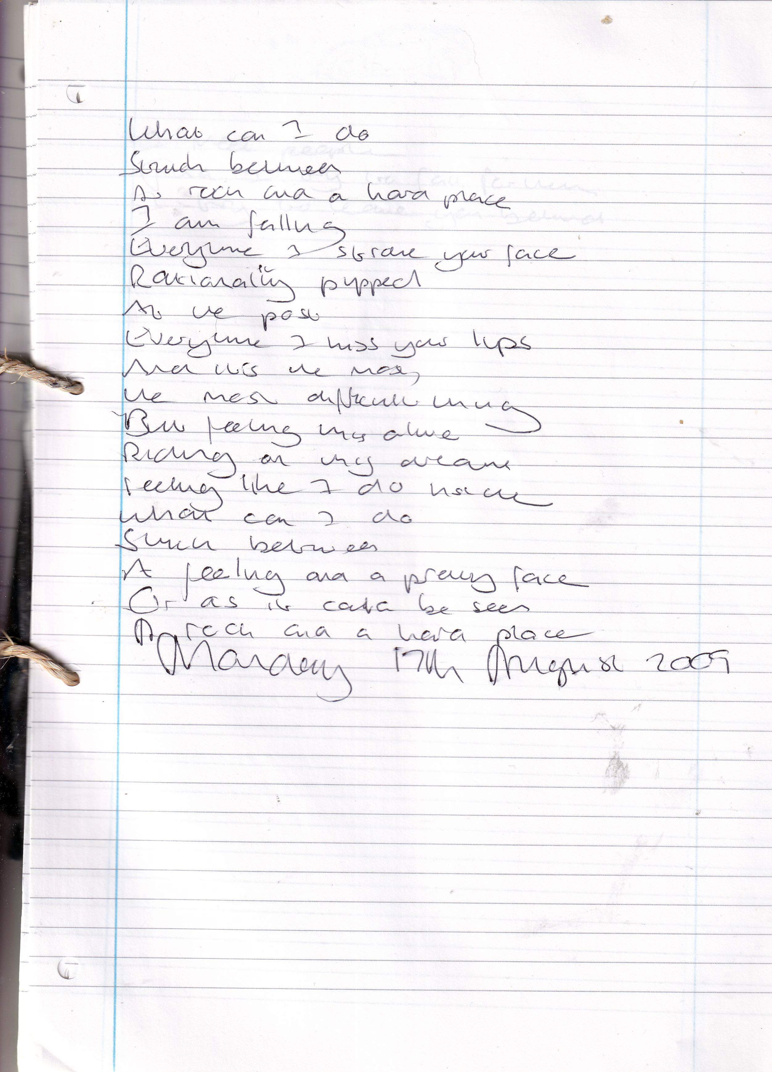 A Feeling and a Pretty Face – Written Monday 17th August 2009 (Aged 34)