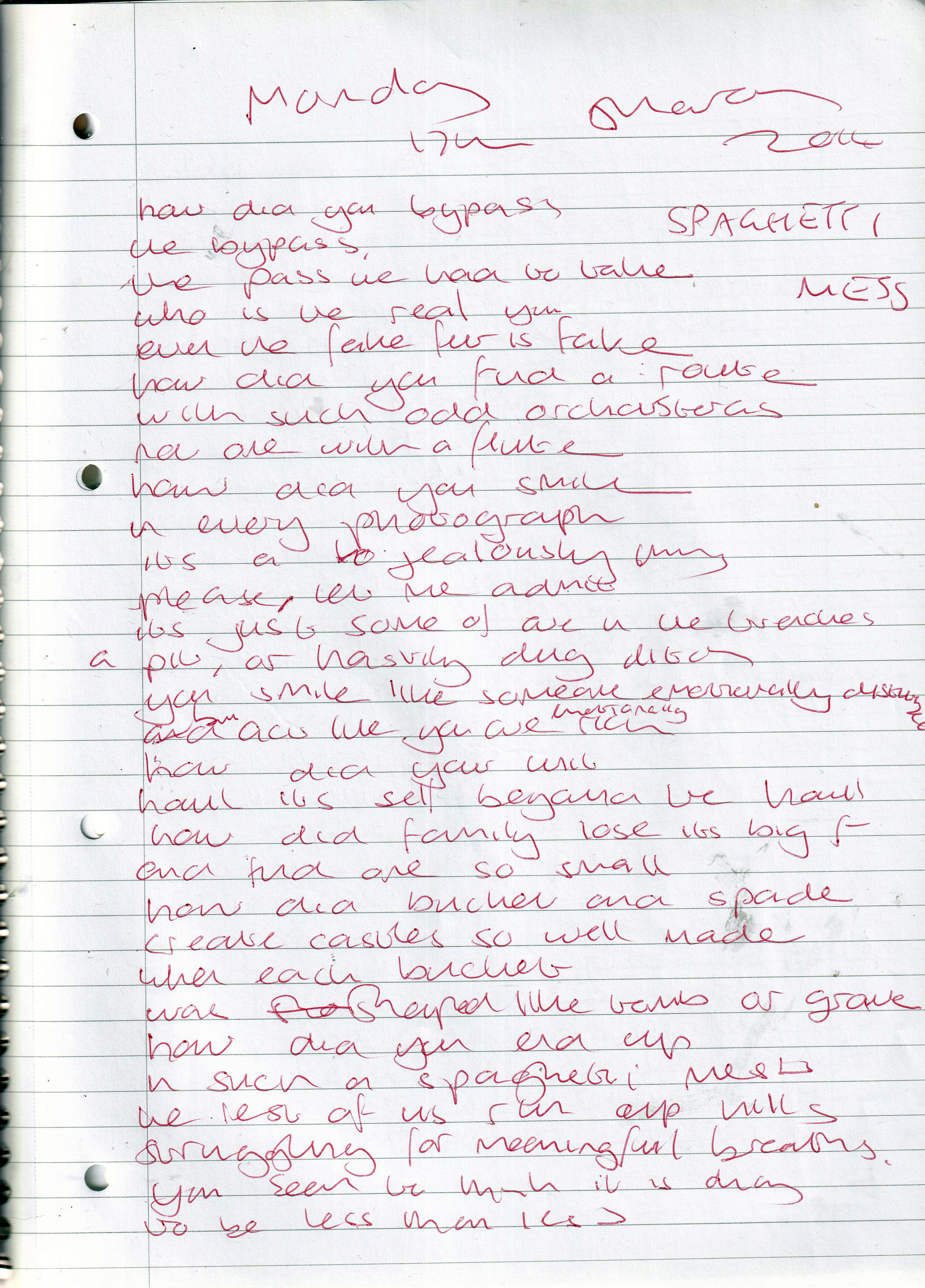 Spaghetti Mess – Written Monday 17th March 2014 (Aged 39)
