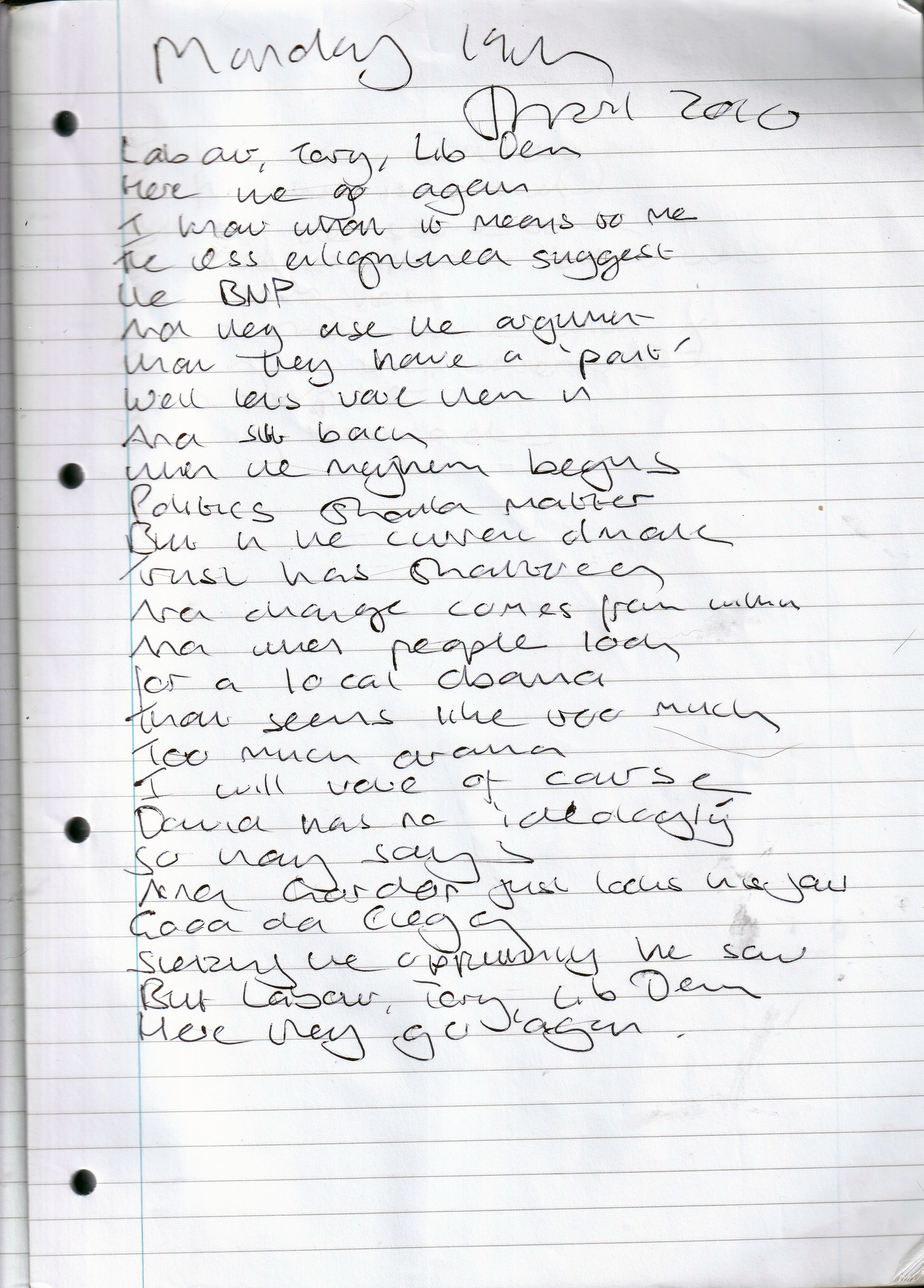 Here We Go Again – Written Monday 19th April 2010 (Aged 35)