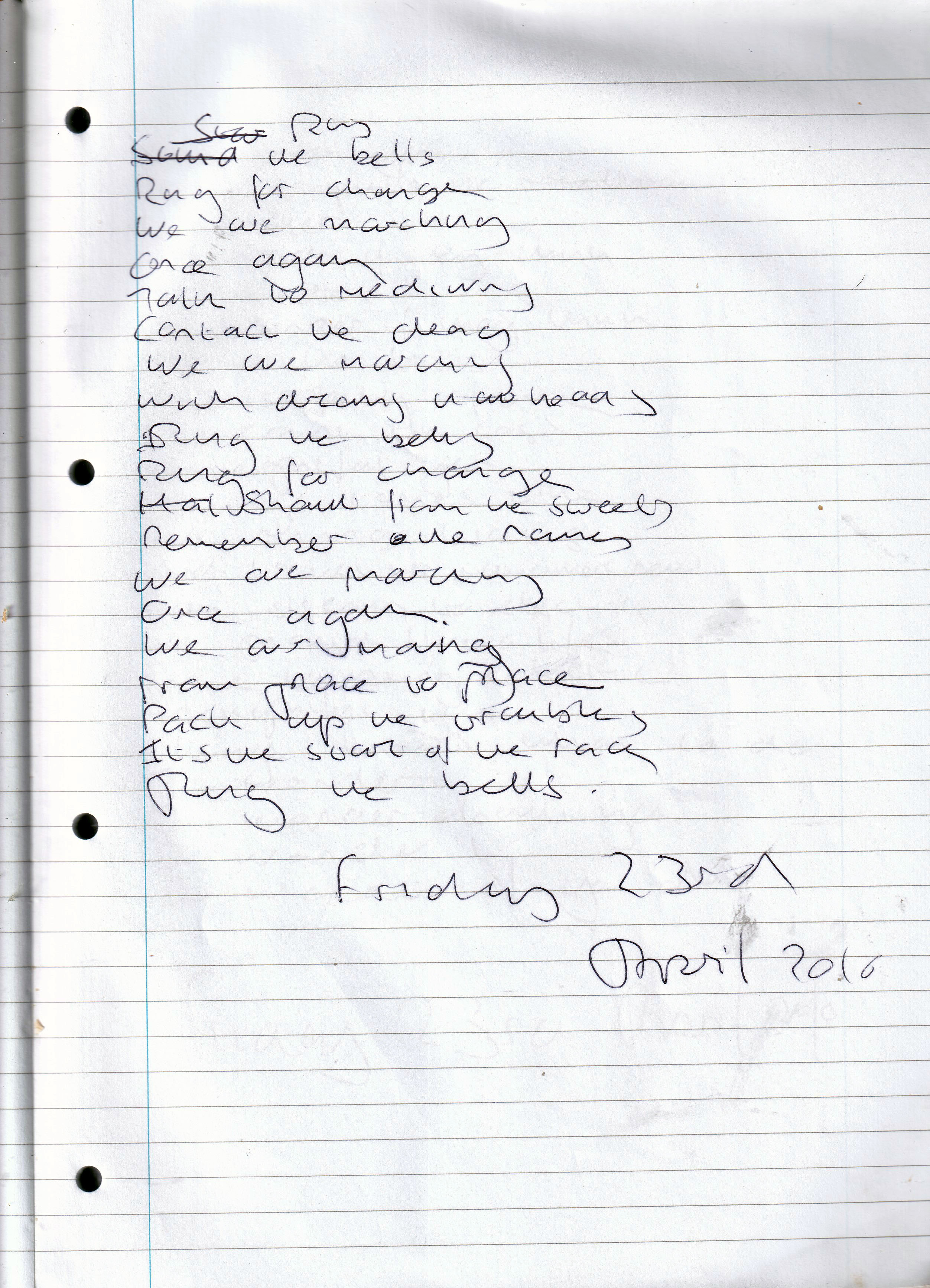 Ring The Bells – Written Friday 23rd April 2010 (Aged 35)