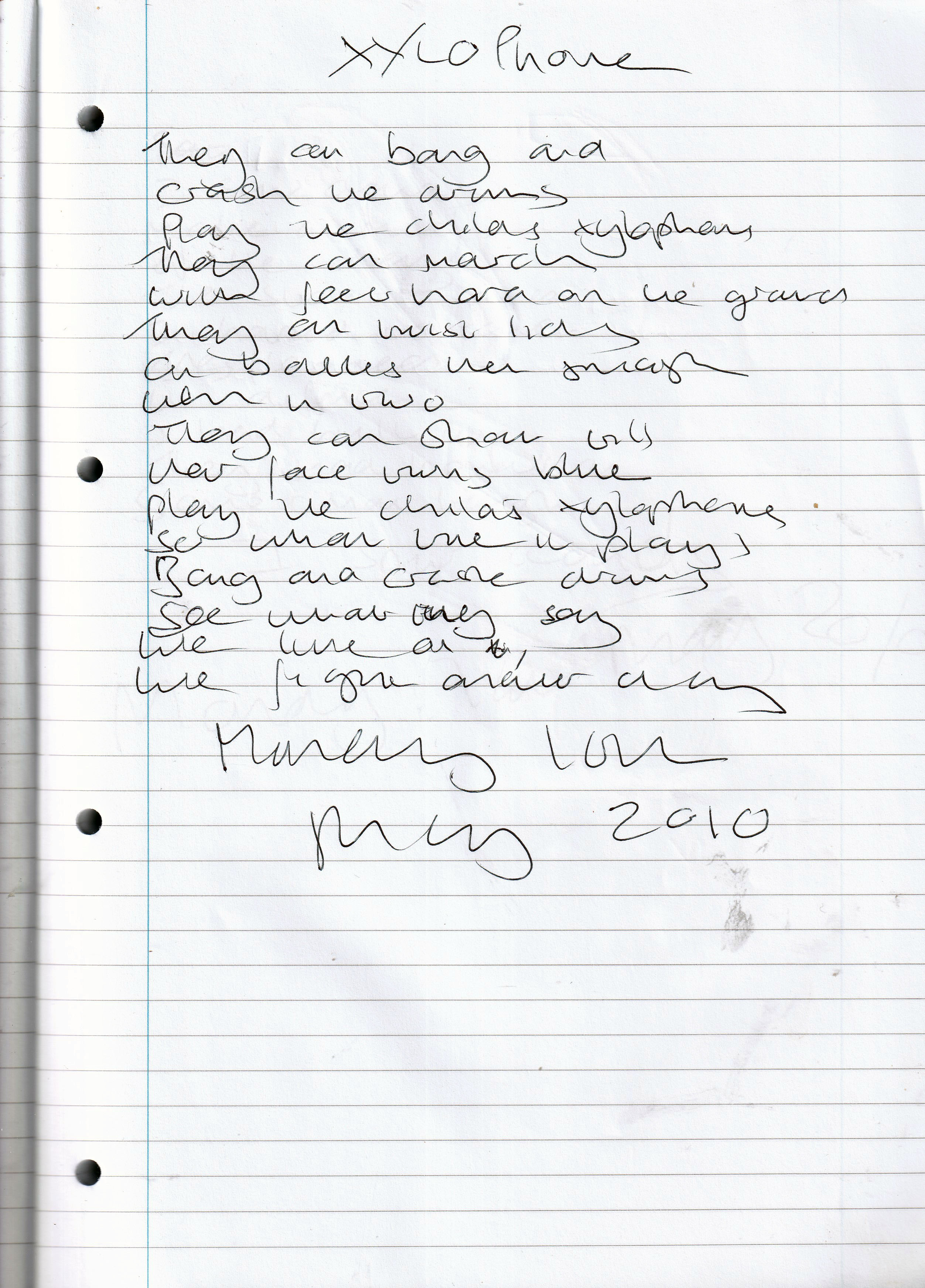 Xylophone – Written Monday 17th May 2010 (Aged 35)