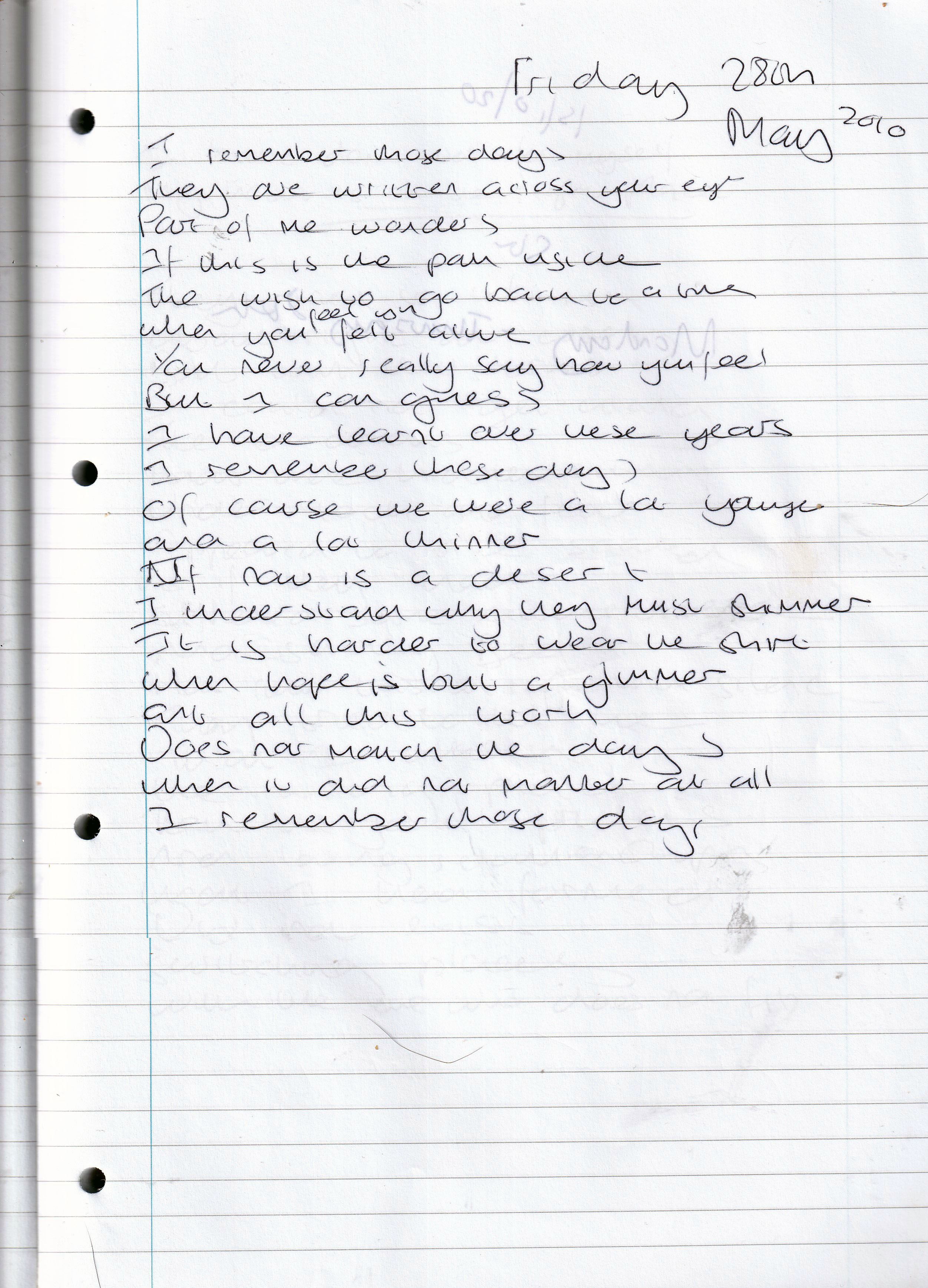 Written Across Your Eyes – Written May 2010 (Aged 35)