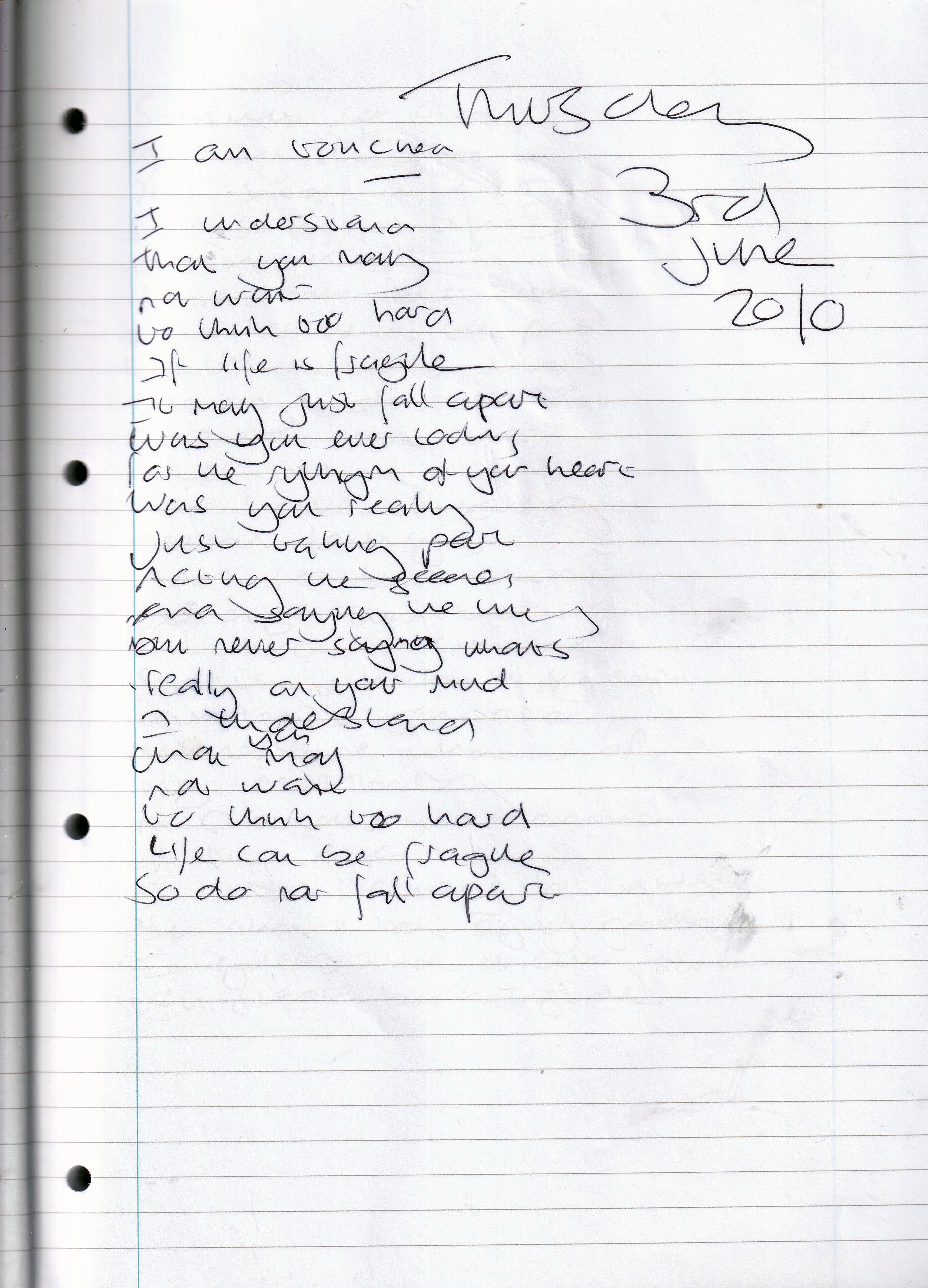 Rhythm of Your Heart – Written Thursday 3rd June 2010 (Aged 35)