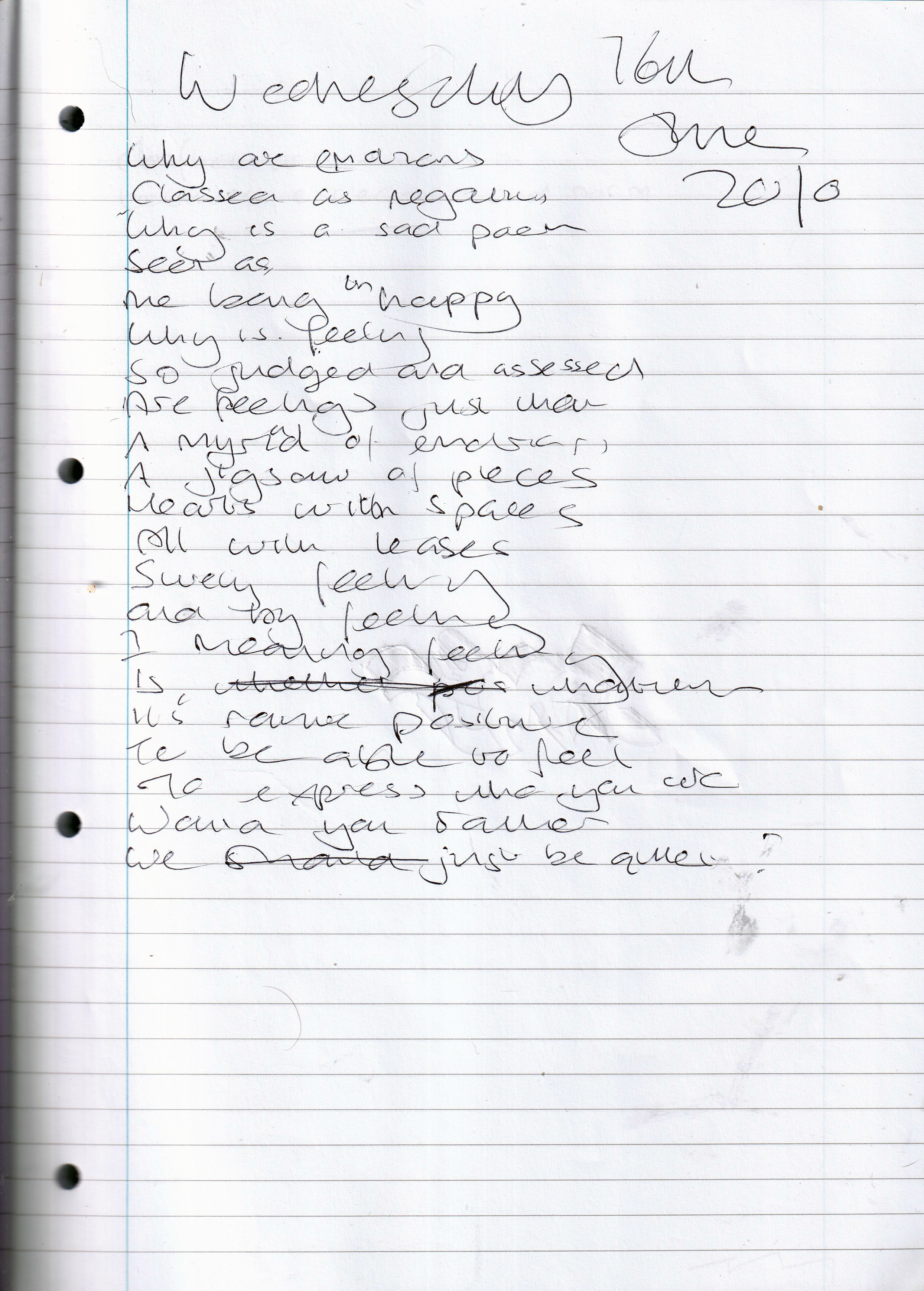 Emotions – Written Wednesday 16th June 2010 (Aged 35)