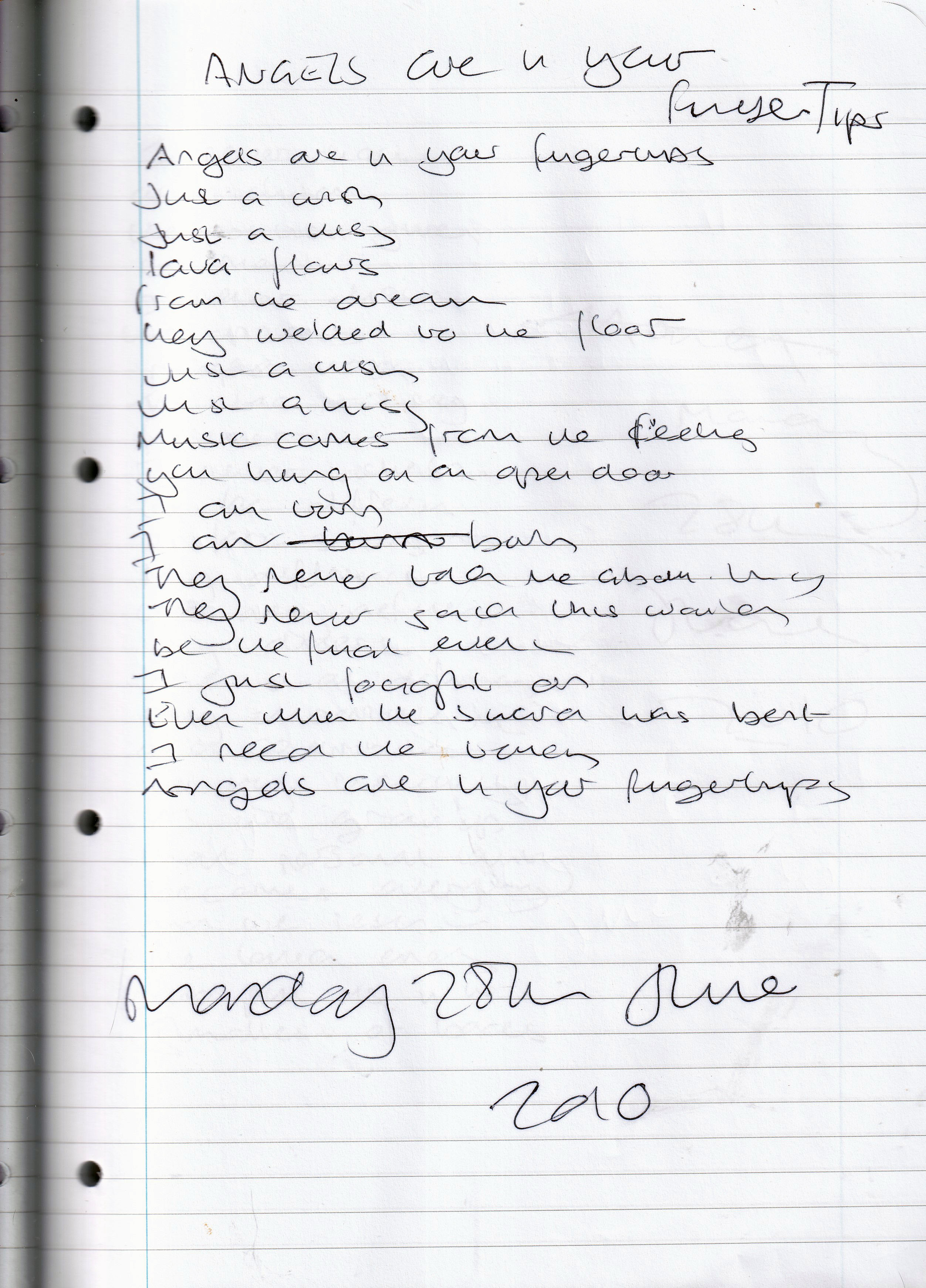 Angels Are In Your Fingertips – Written Monday 28th June 2010 (Aged 35)