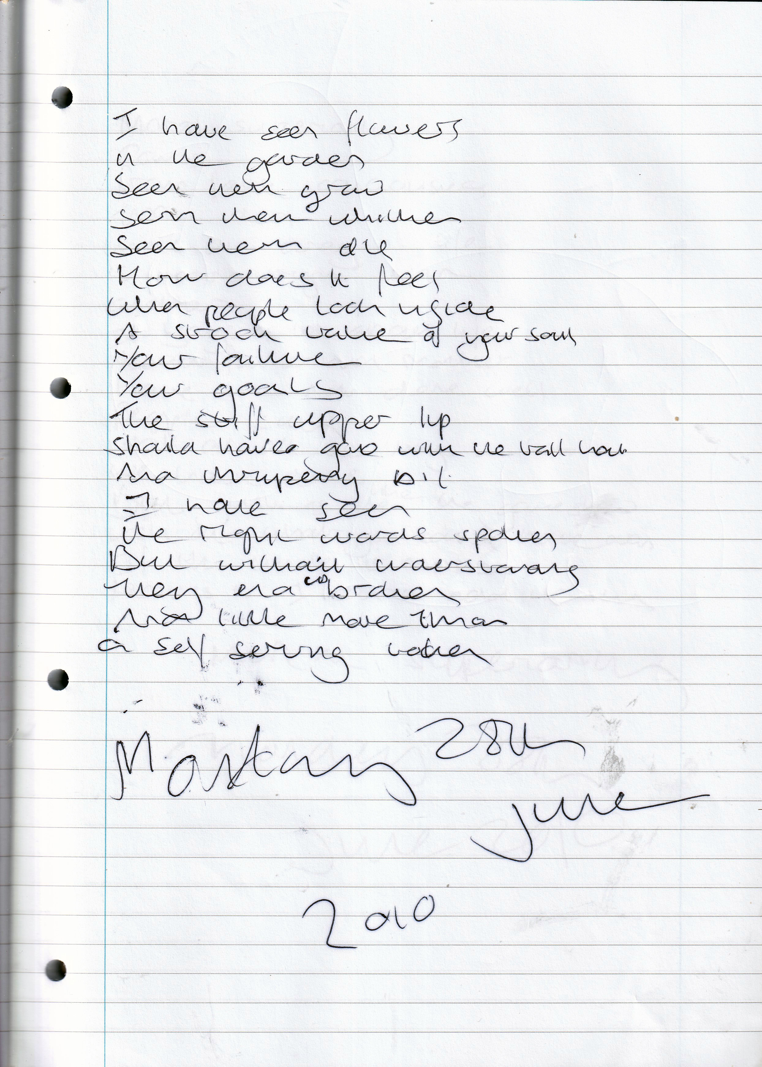 Flowers In The Garden – Written Monday 28th June 2010 (Aged 35)