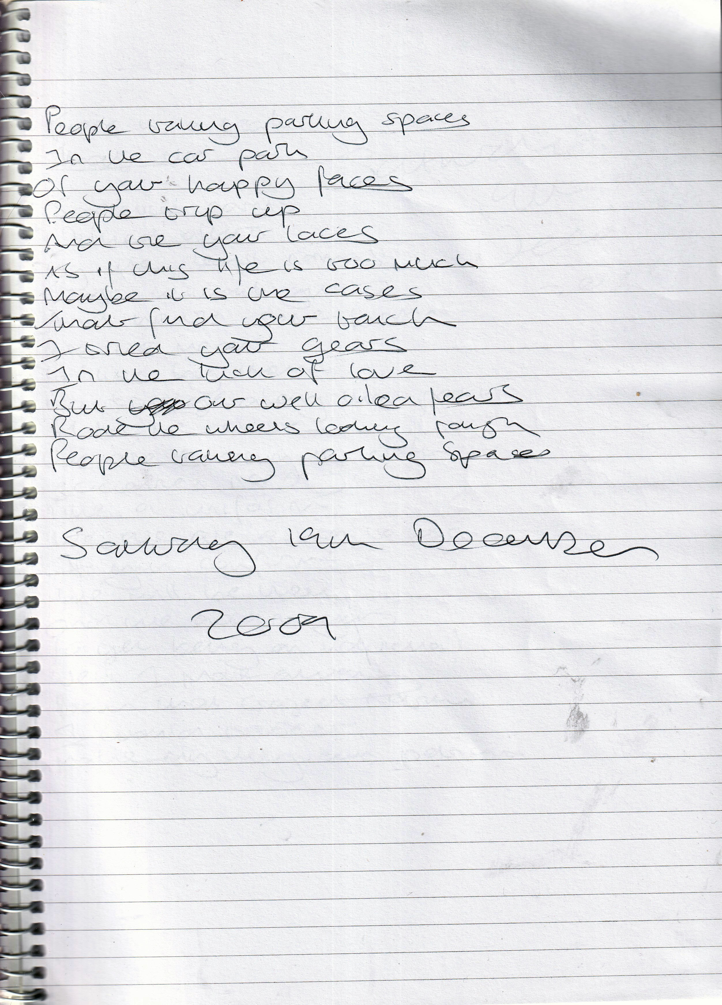 Parking Spaces – Written Saturday 19th December 2009 (Aged 34)