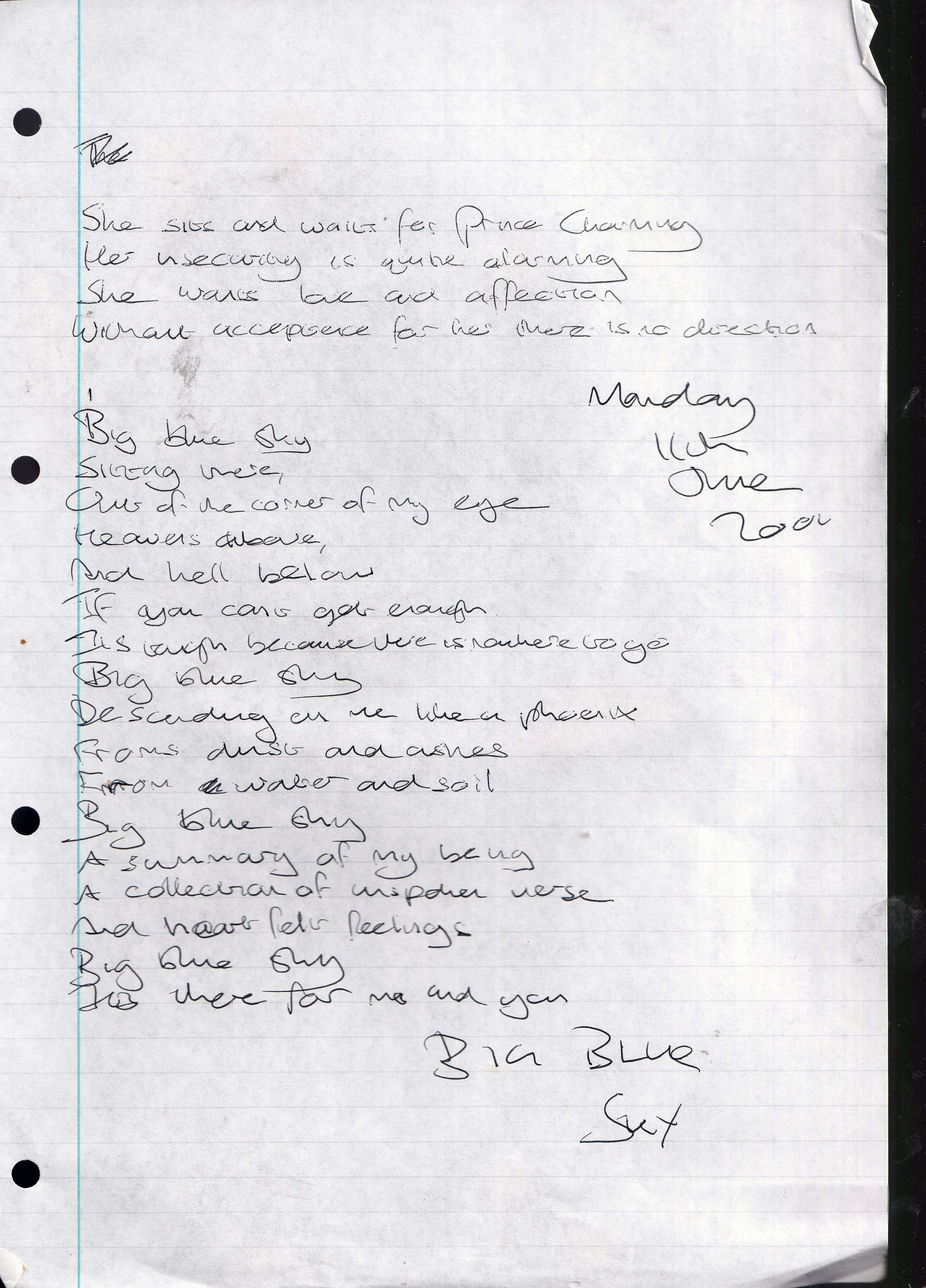 Big Blue Sky – Written Monday 11th June 2001 (Aged 26)