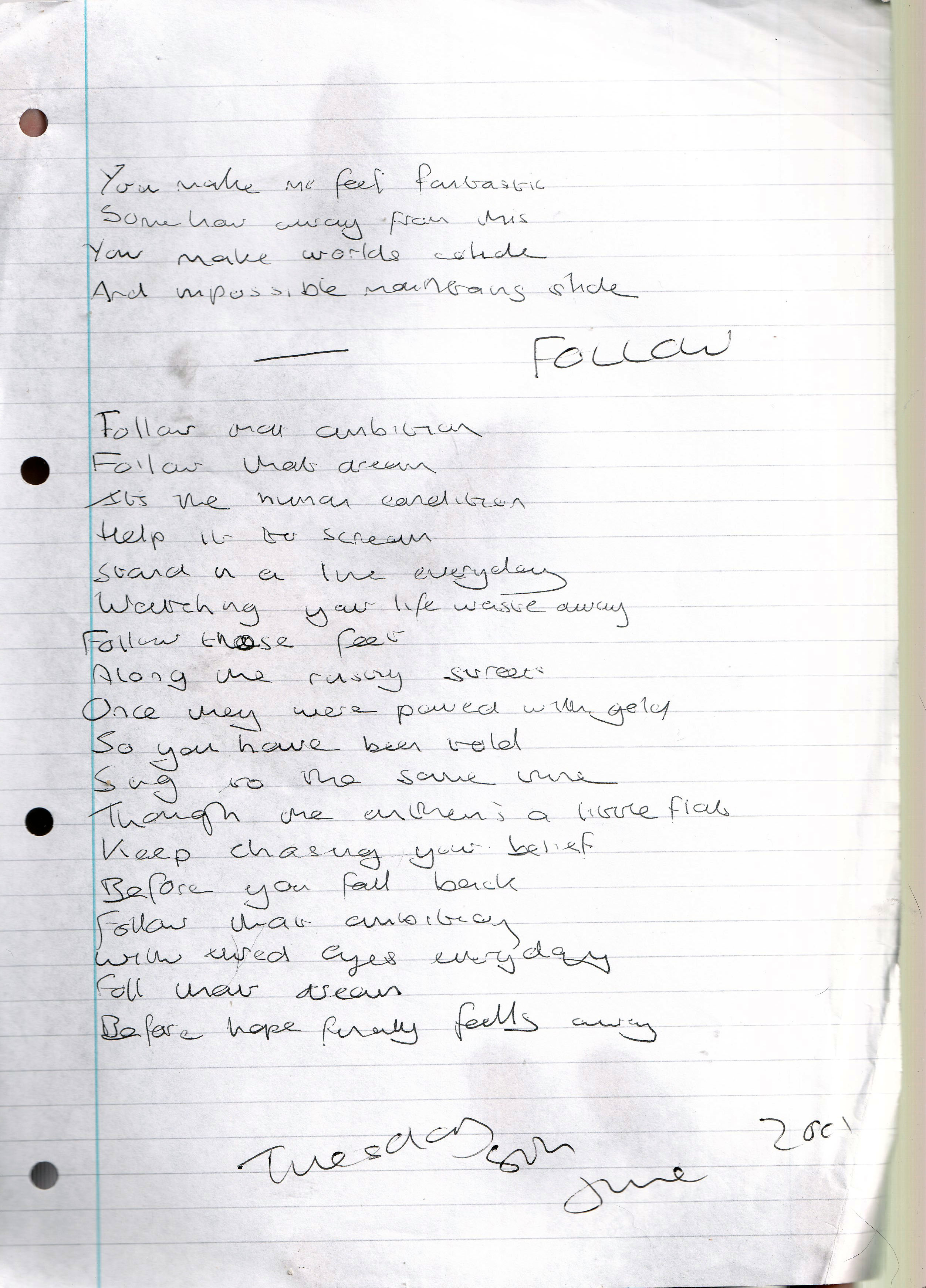 Follow – Written Tuesday 5th June 2001 (Aged 26)