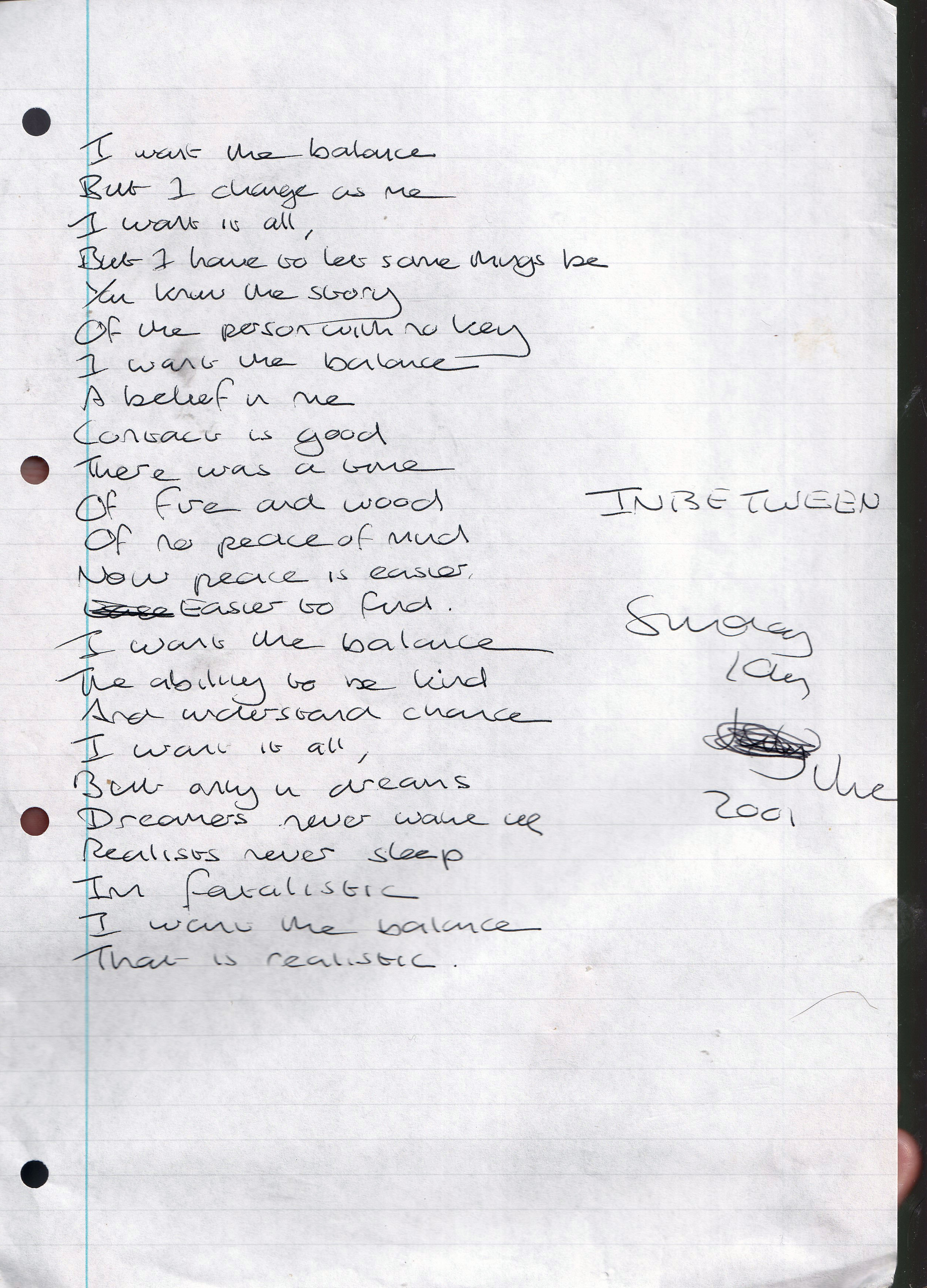 In-between – Written Sunday 10th June 2001 (Aged 26)