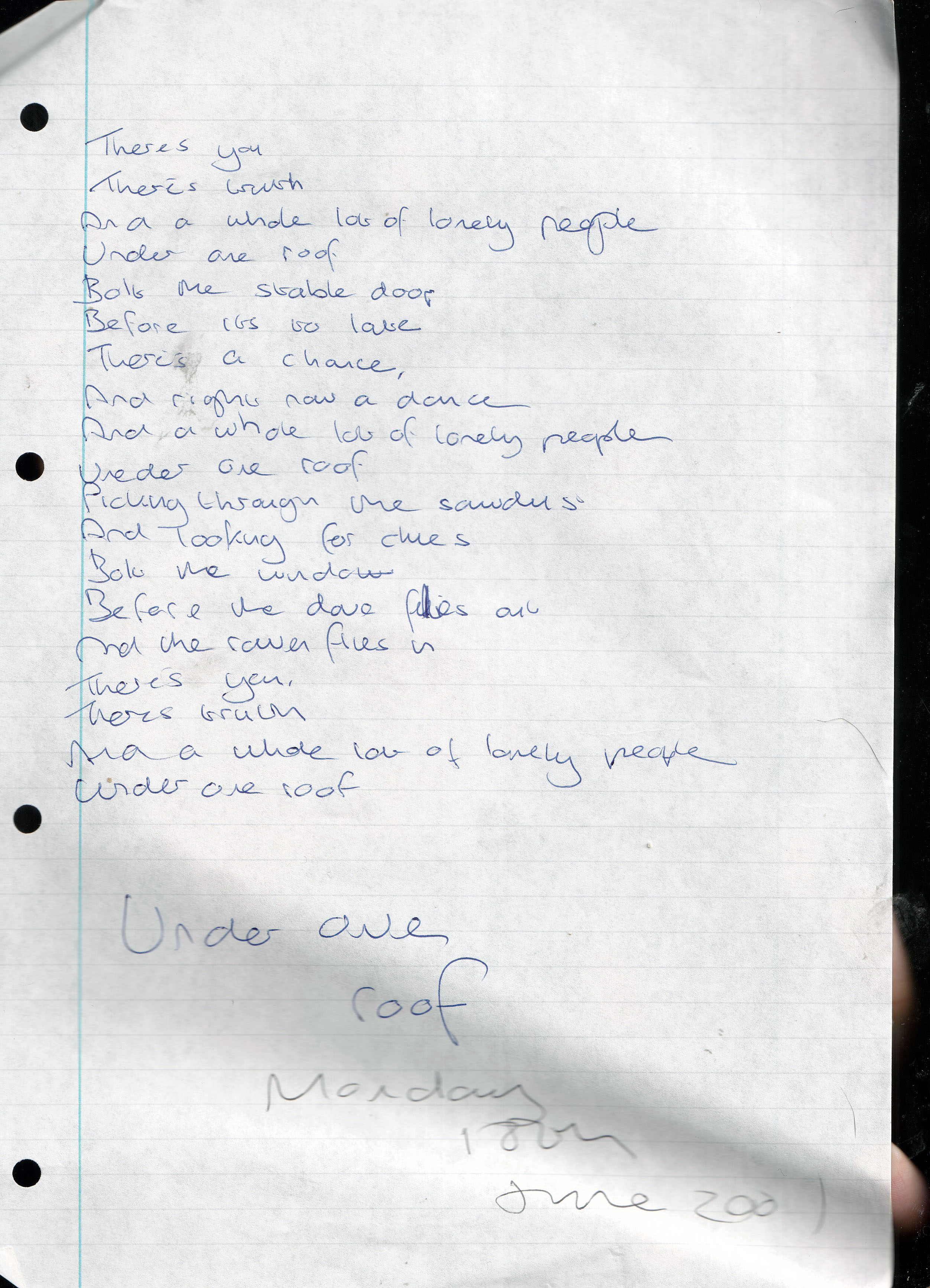 Under One Roof – Written Monday 18th June 2001 (Aged 26)