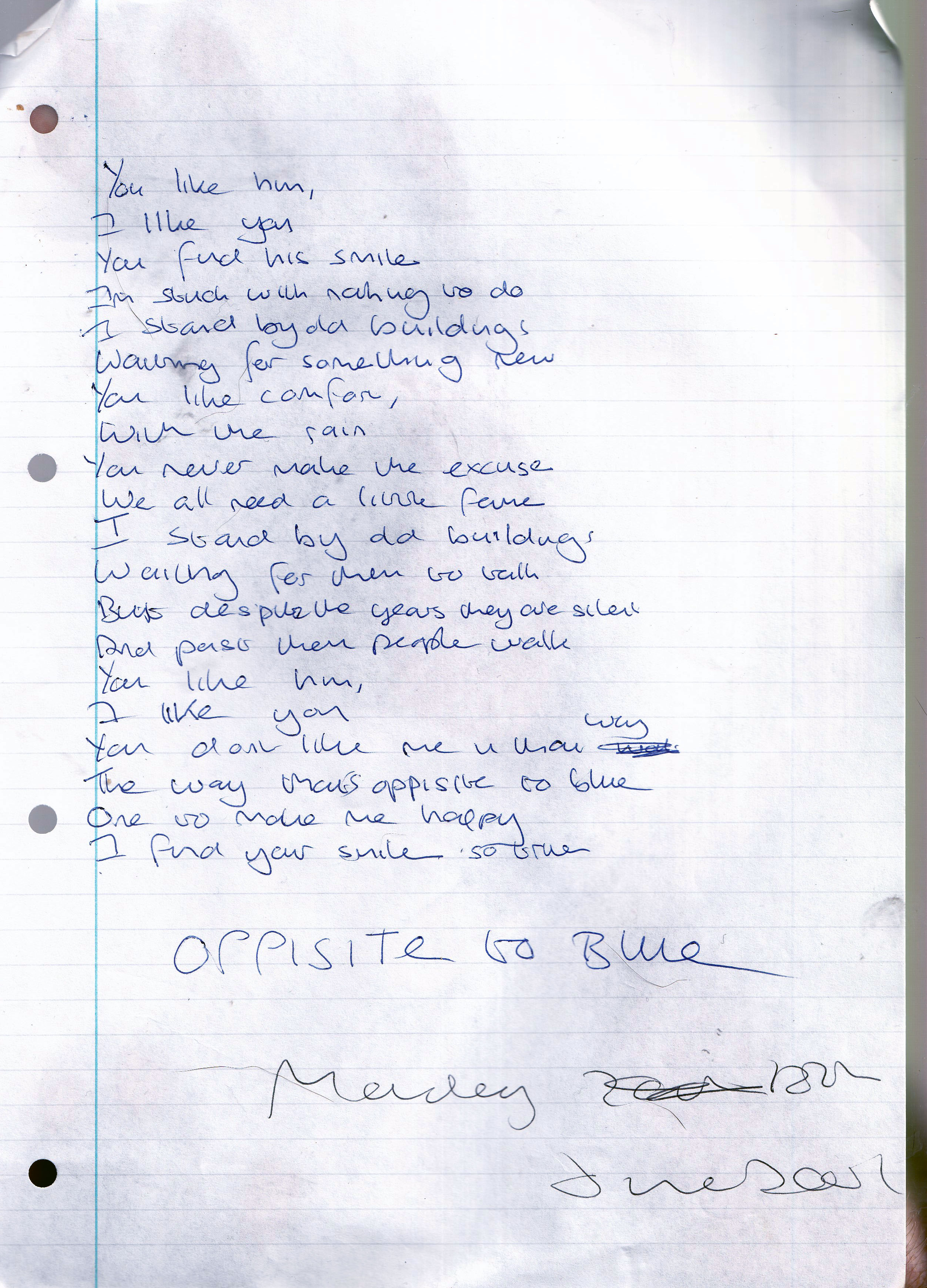 Opposite To Blue – Written Monday 18th June 2001 (Aged 26)