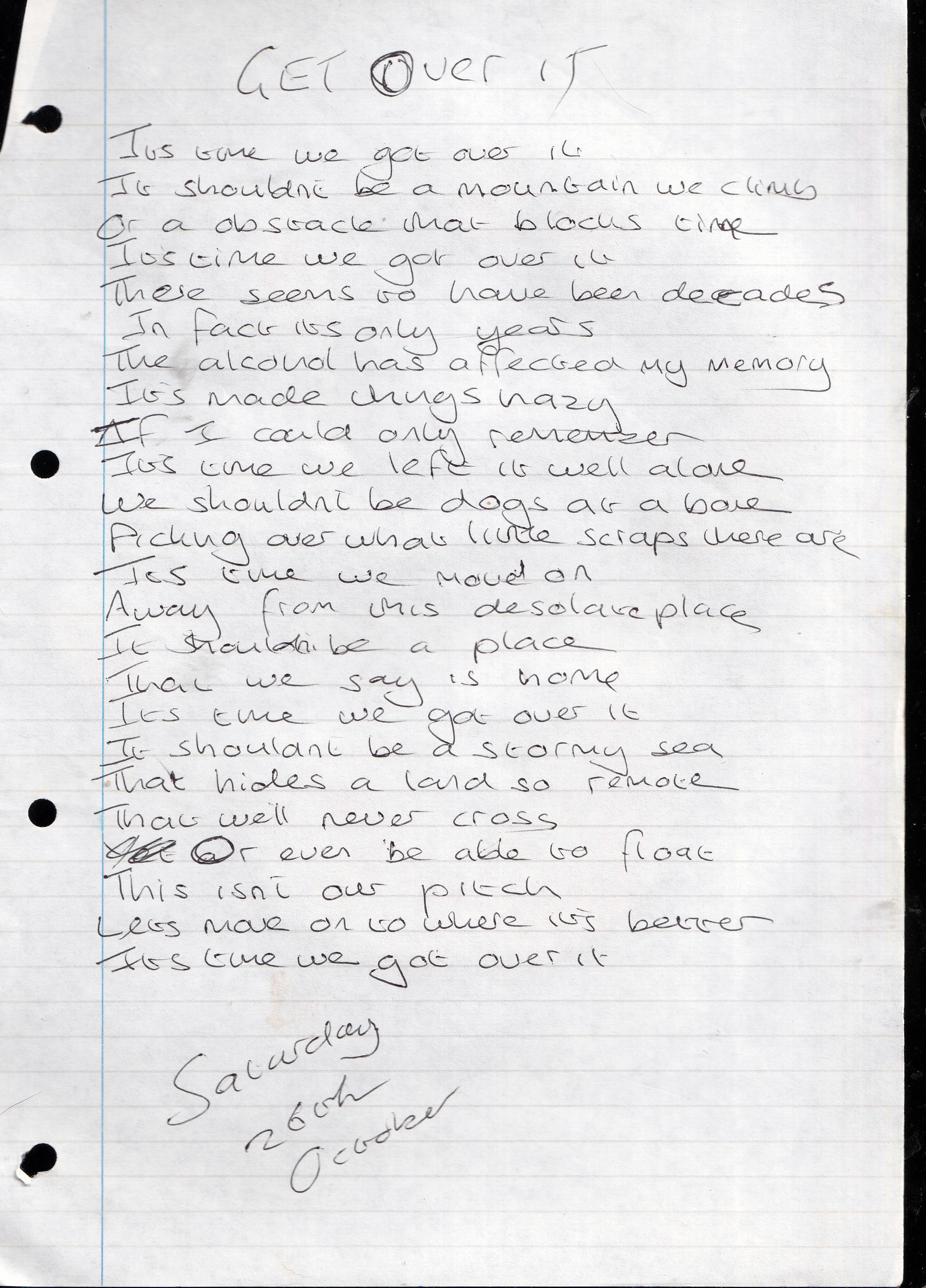 Get Over It – Written Saturday 26th October 1997 (Aged 22)