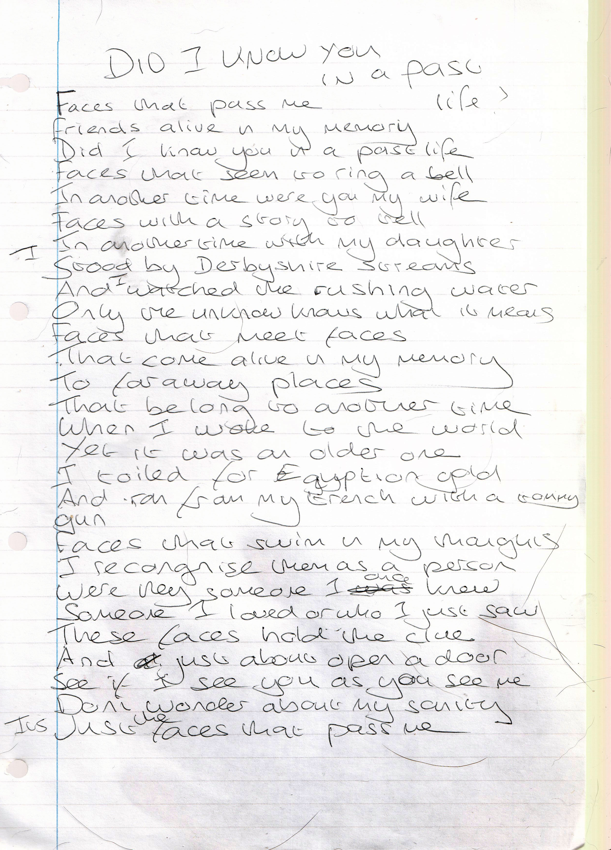 Did I Know You In A Past Life – Written October 1997 (Aged 22)