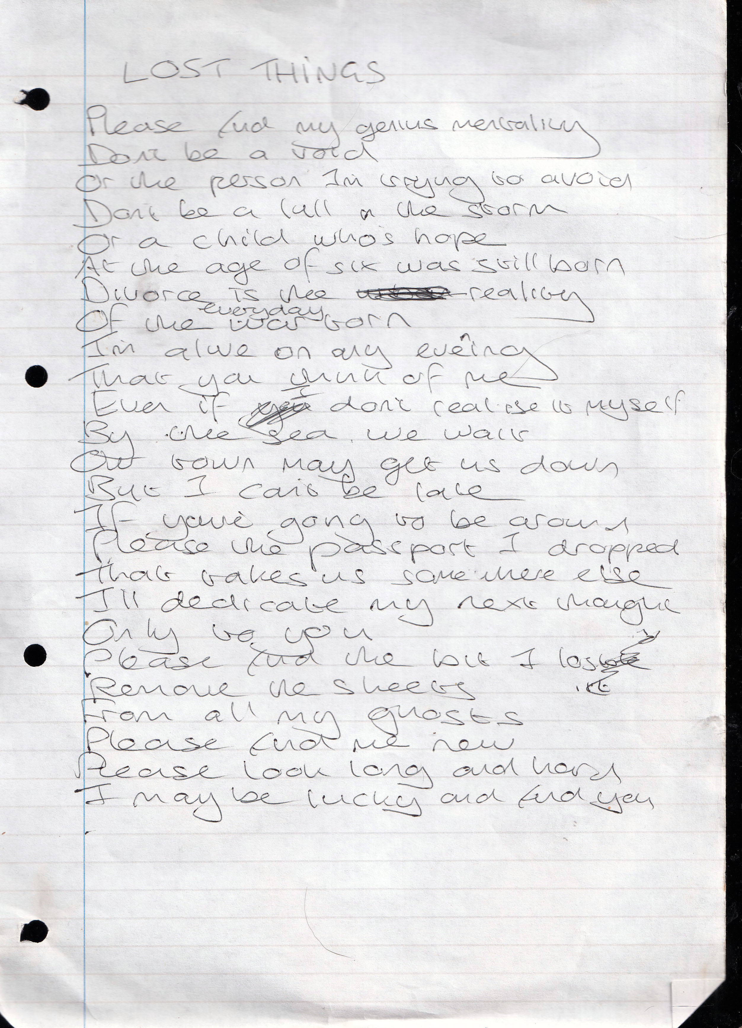 Lost Things – Written October 1997 (Aged 22)