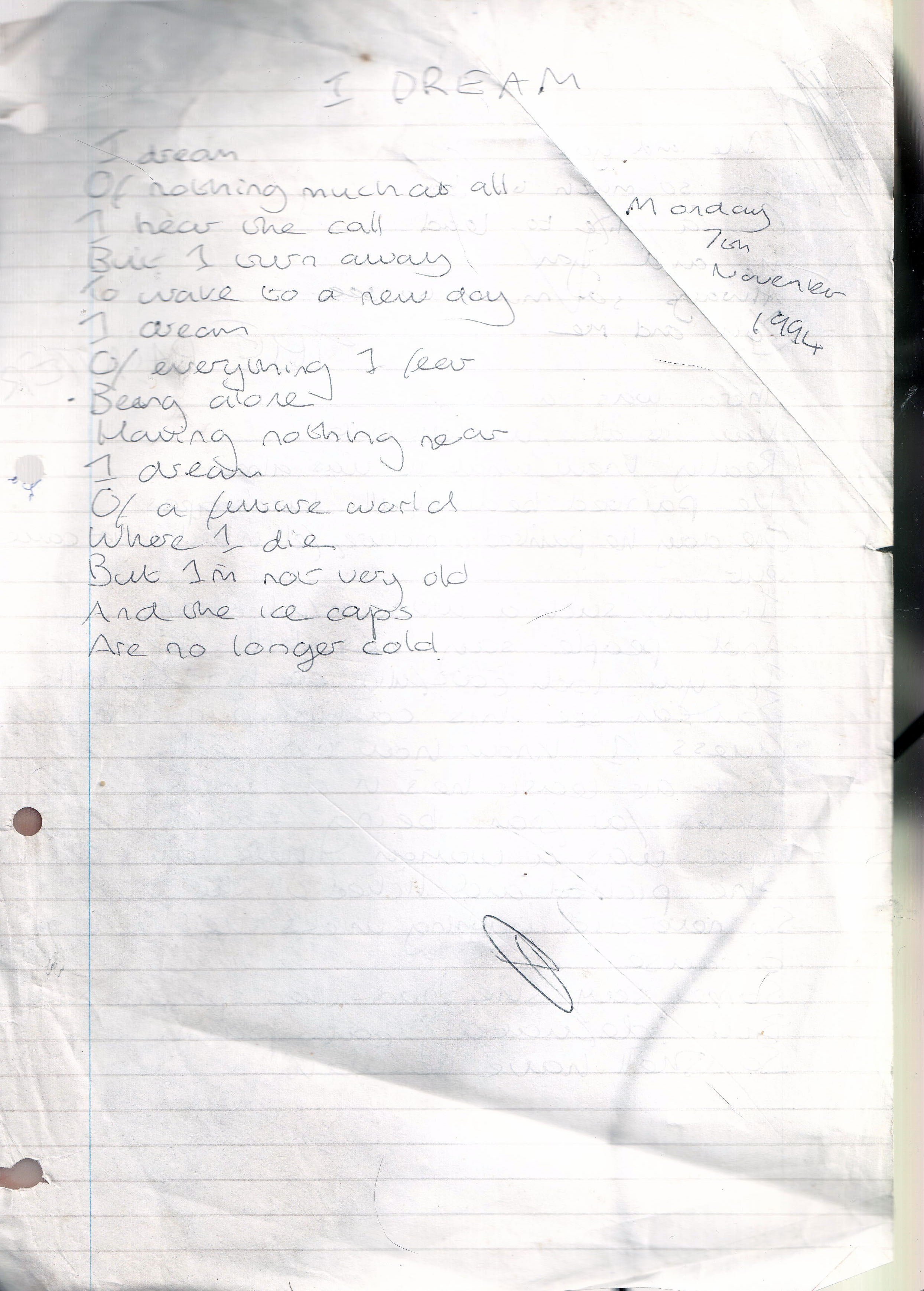 I Dream – Written Monday 7th November 1994 (Aged 19)