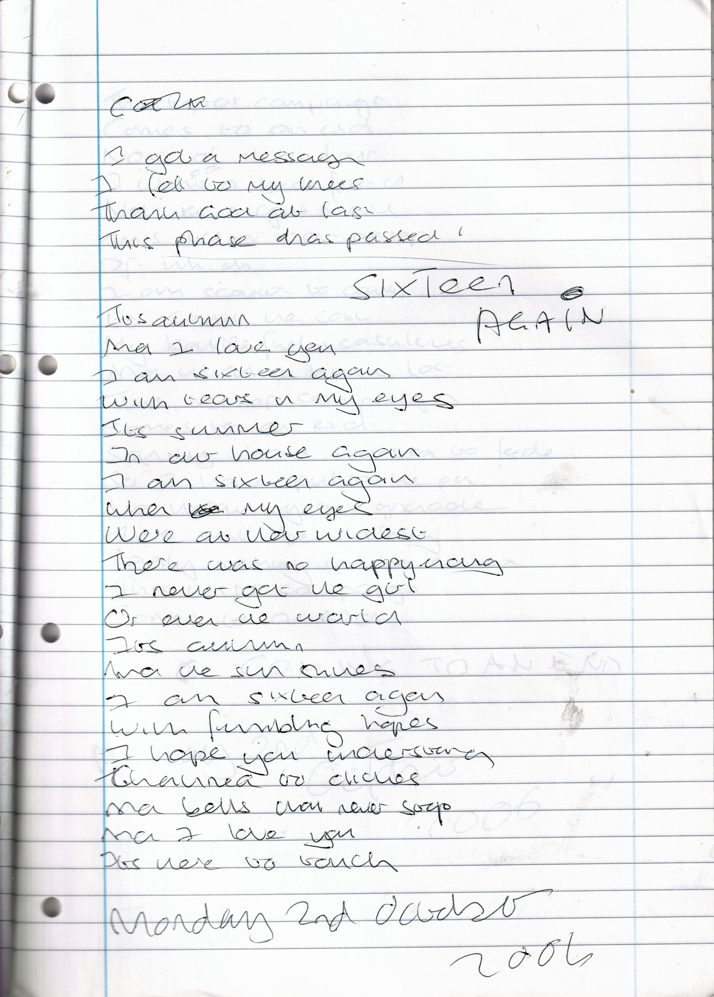 Sixteen Again – Written Monday 2nd October 2006 (Aged 31)