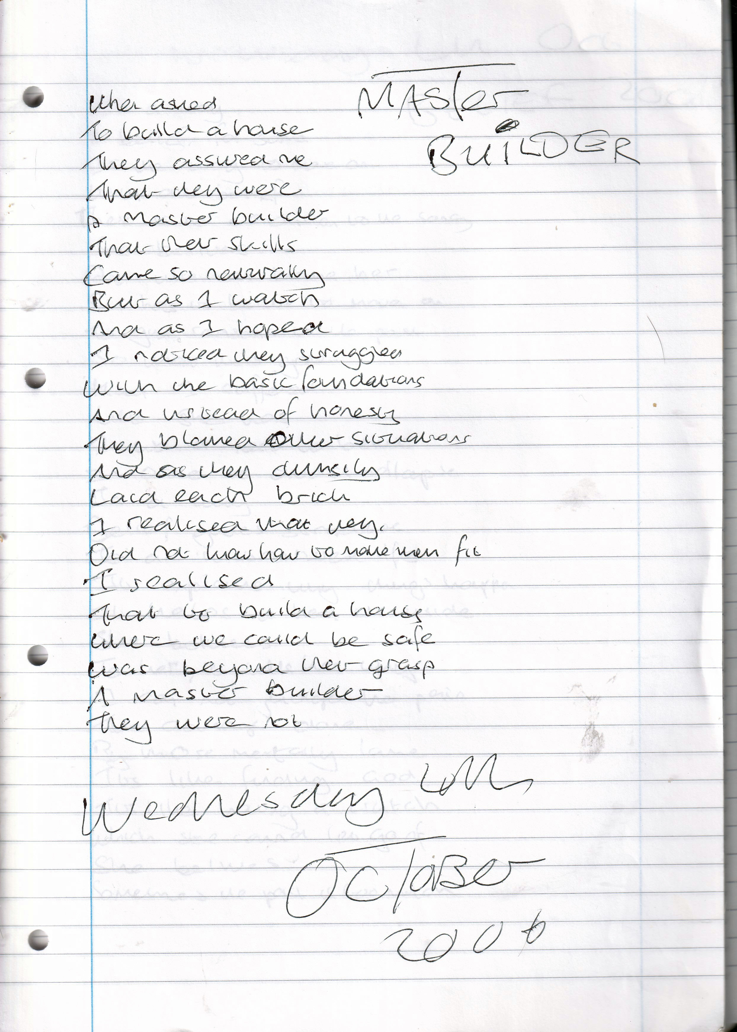 Master Builder – Written Wednesday 4th October 2006 (Aged 31)