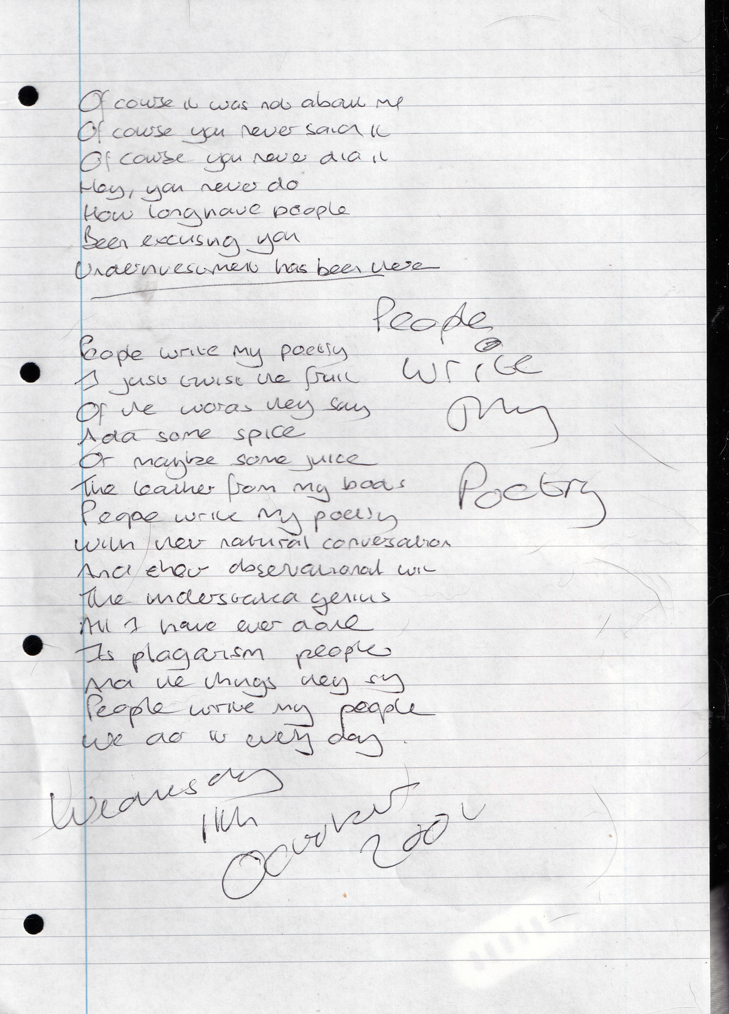 People Write My Poetry – Written Wednesday 11th October 2006 (Aged 31)
