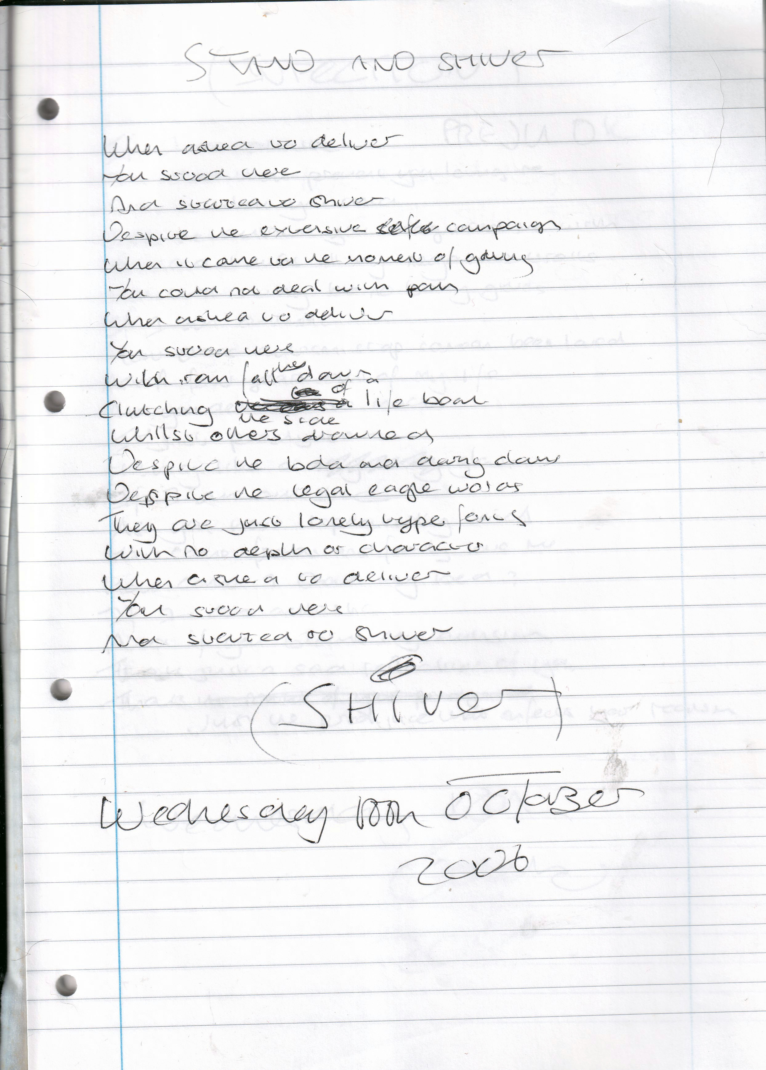 Stand and Shiver – Written Wednesday 18th October 2006 (Aged 31)