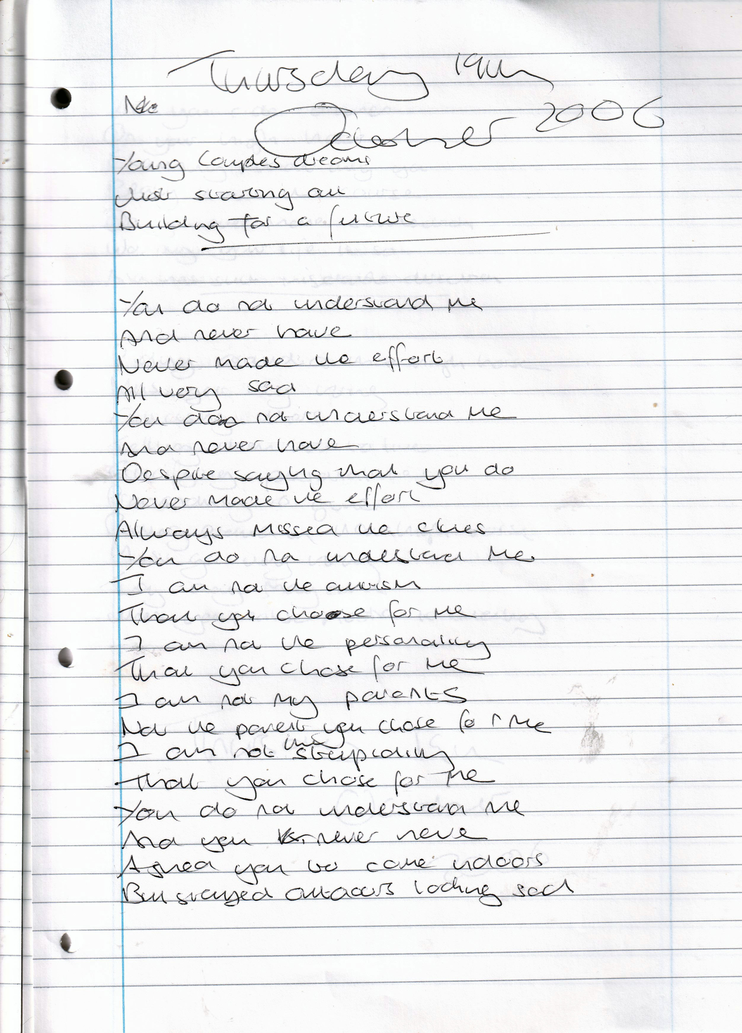 You Do Not Understand Me – Written Thursday 19th October 2006 (Aged 31)