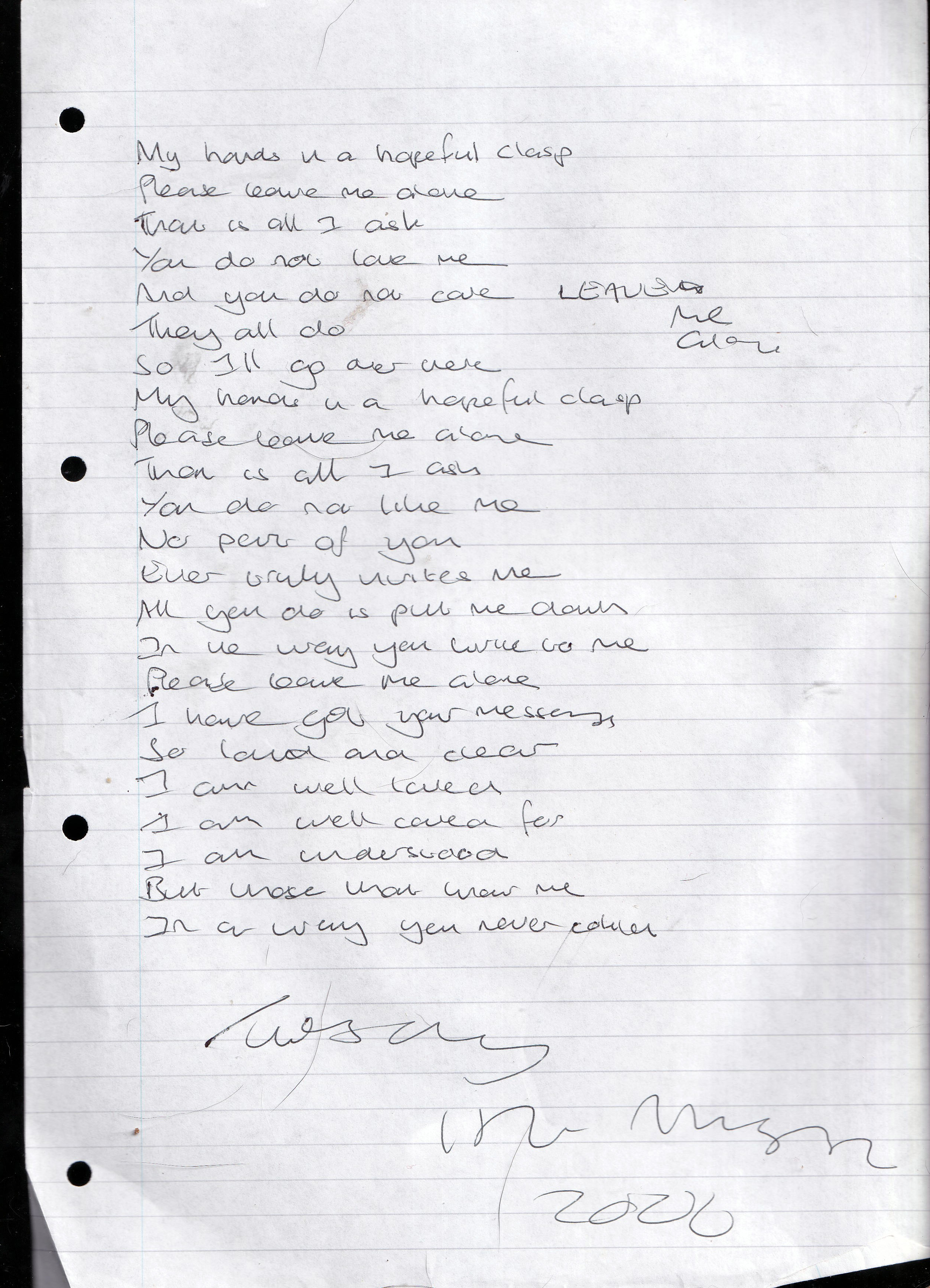 Leave Me Alone – Written Tuesday 18th August 2006 (Aged 31)