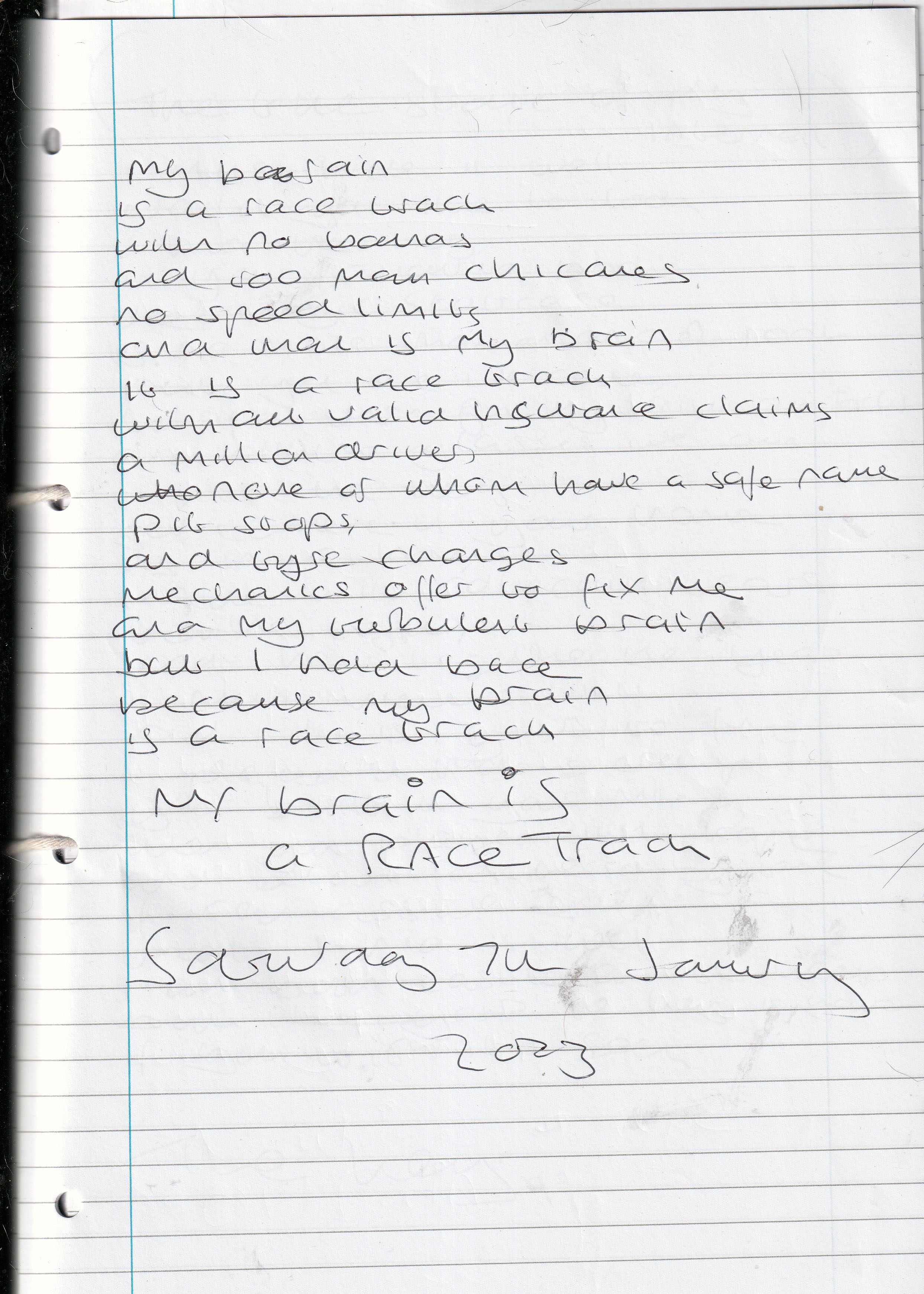 My Brain Is a Racetrack – Written Saturday 7th January 2023 (Aged 47)