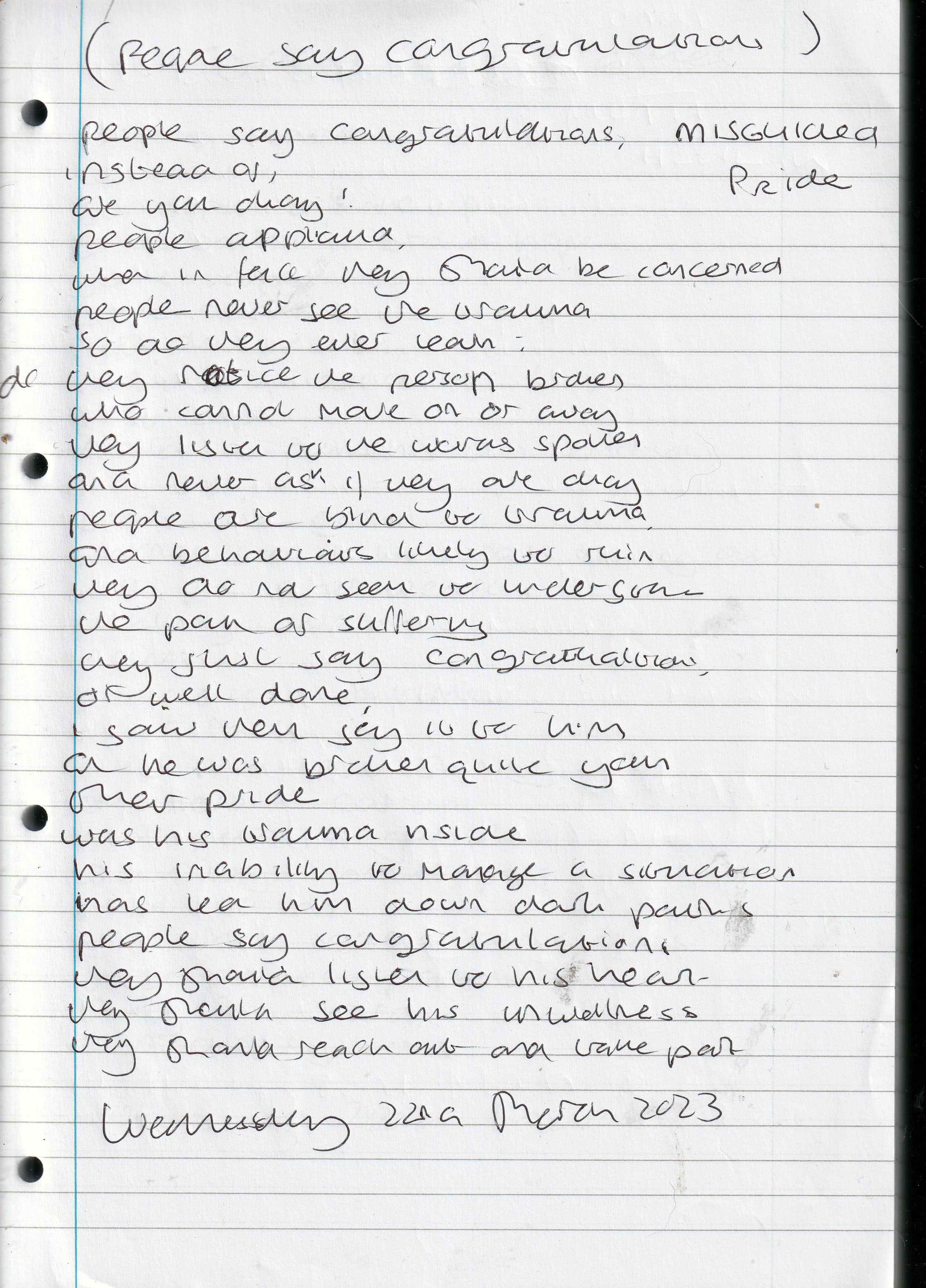 Misguided Pride – Written Wednesday 22nd March 2023 (Aged 48)