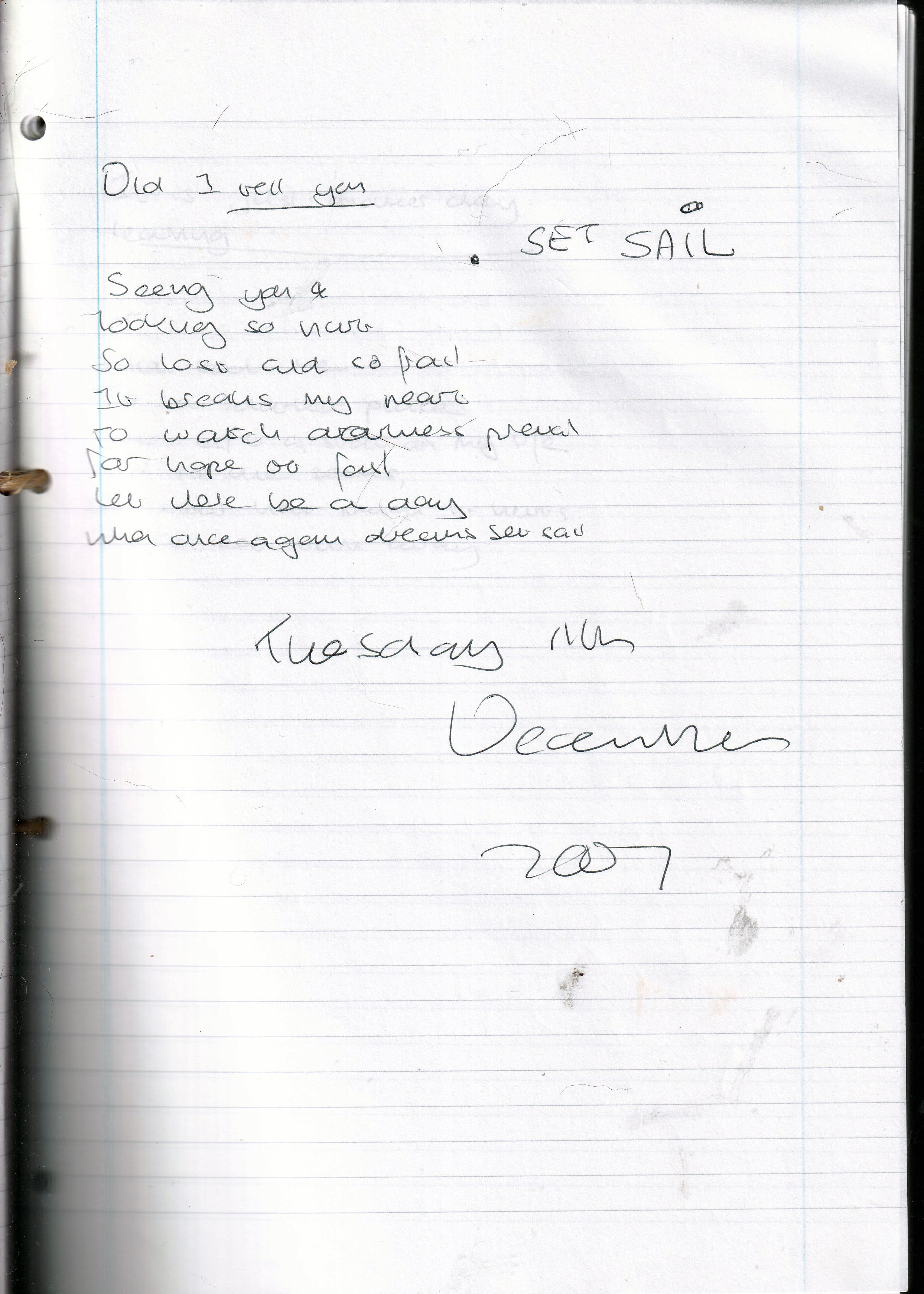 Set Sail – Written Tuesday 11th December 2007 (Aged 32)